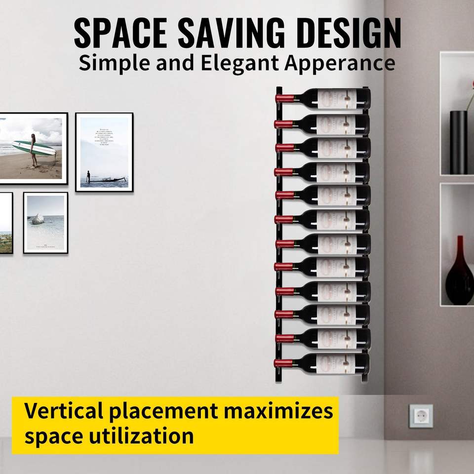 Modern Decorative Wall Mounted 12 Bottle Wine Rack Black Steel Vertical Wine Rack Simple Storage for Home Decor Towel Rack