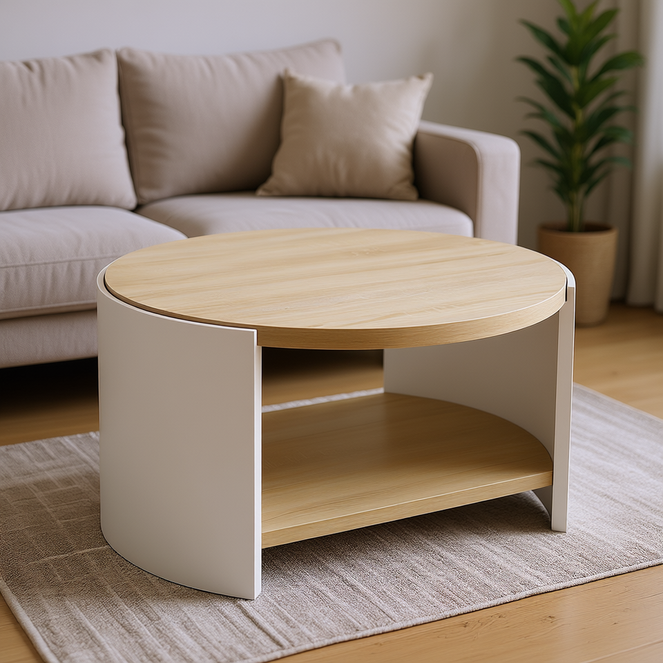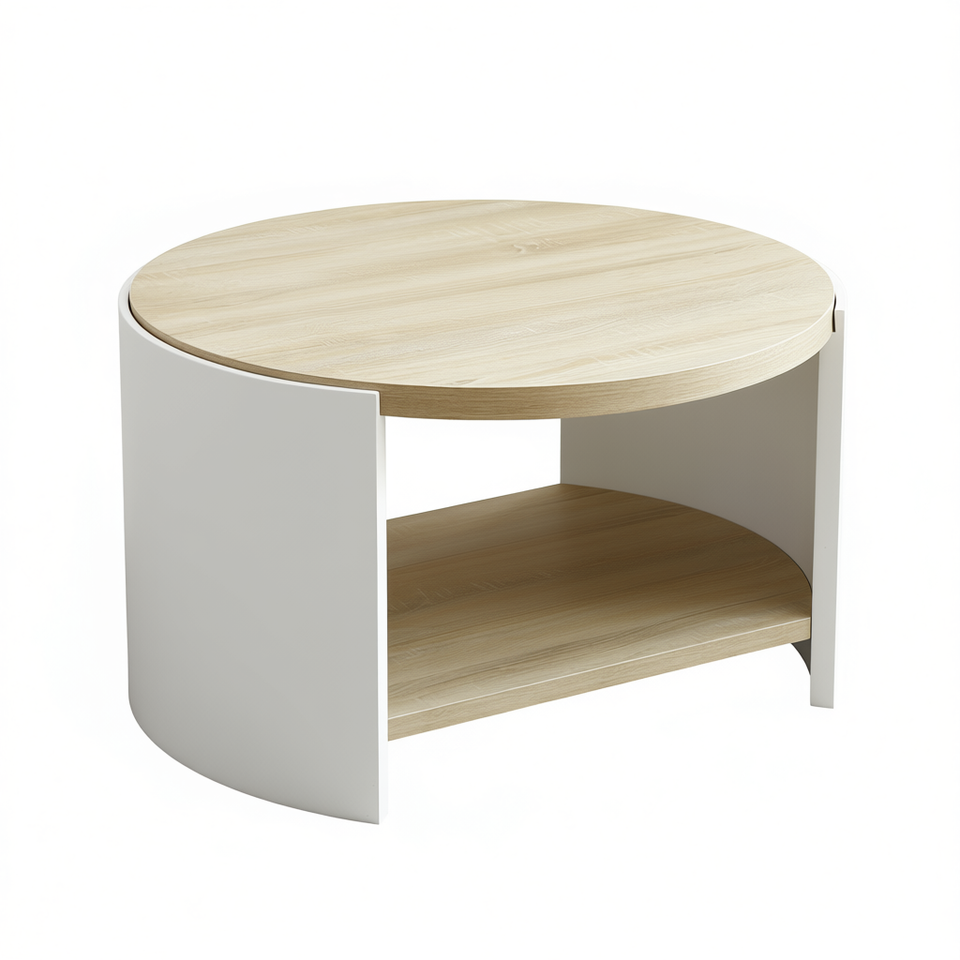 Tavolino da Caffè Moderno Rotondo in Legno a 2 Ripiani, 31 Pollici, Arredamento per Soggiorno