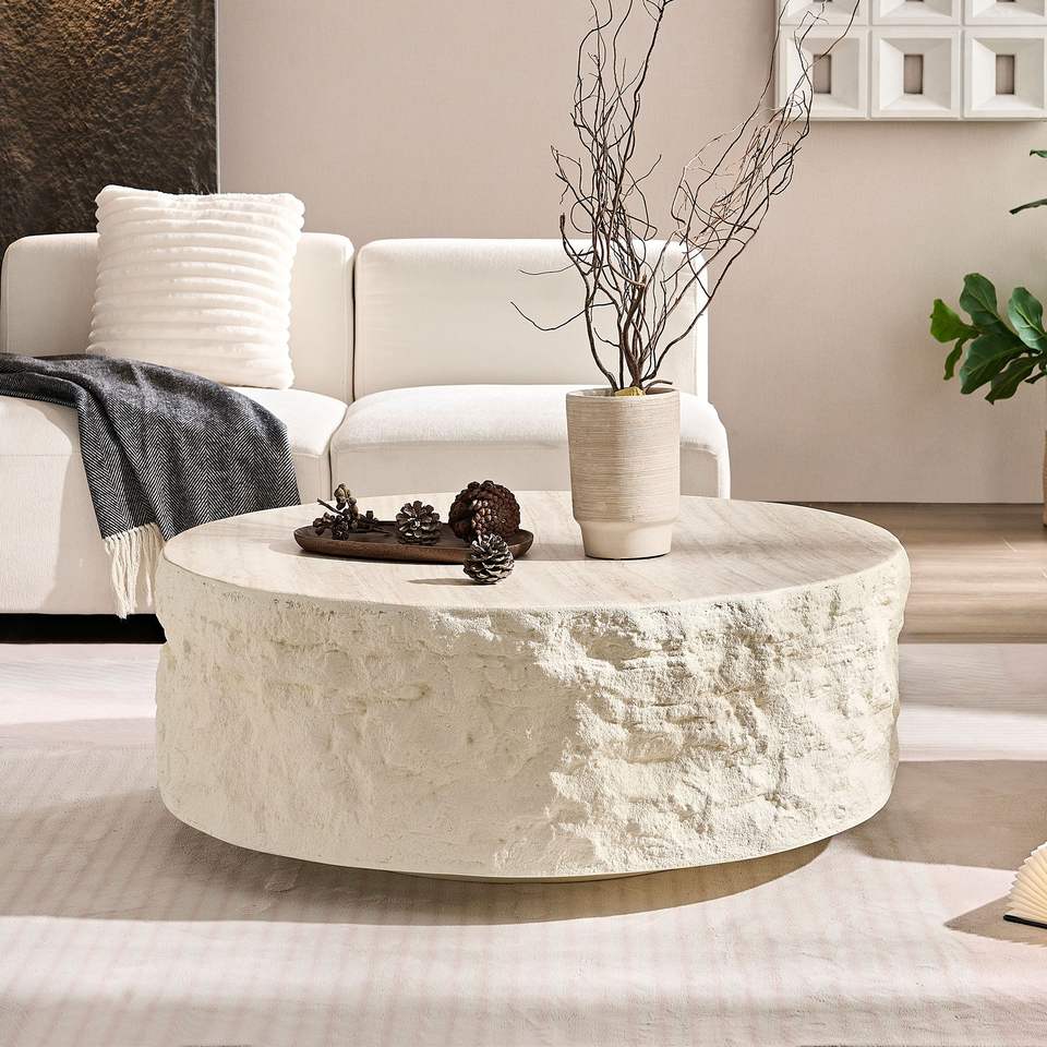 Tavolino da Caffè Rotondo in Fibra di Vetro 35.43 dal Design Moderno, Tavolo Vintage Effetto Pietra per Divano da Soggiorno