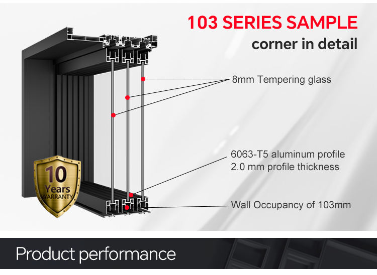 Cornice in lega di alluminio: Costruita in alluminio 6063-T5 con interruzione termica, garantendo durata e integrità strutturale.