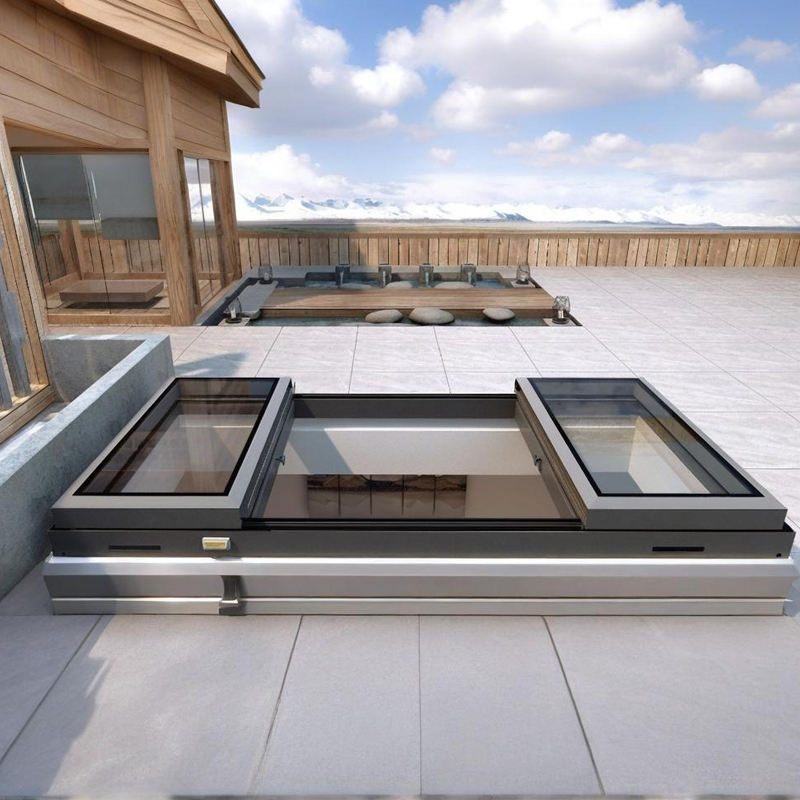 Design moderno automatico finestre scorrevoli in vetro per alberghi di grandi dimensioni in alluminio obliquo tetto telecomando lucernario