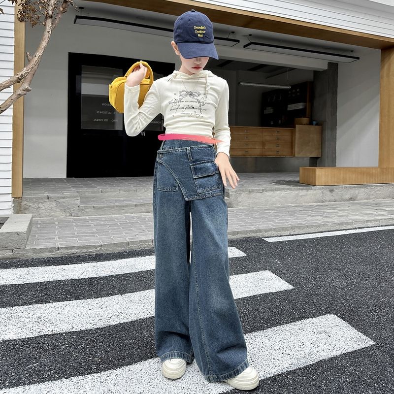 Design moderno autunno primavera pantaloni in Denim per bambini pantaloni dritti per ragazze adolescenti Jeans Casual