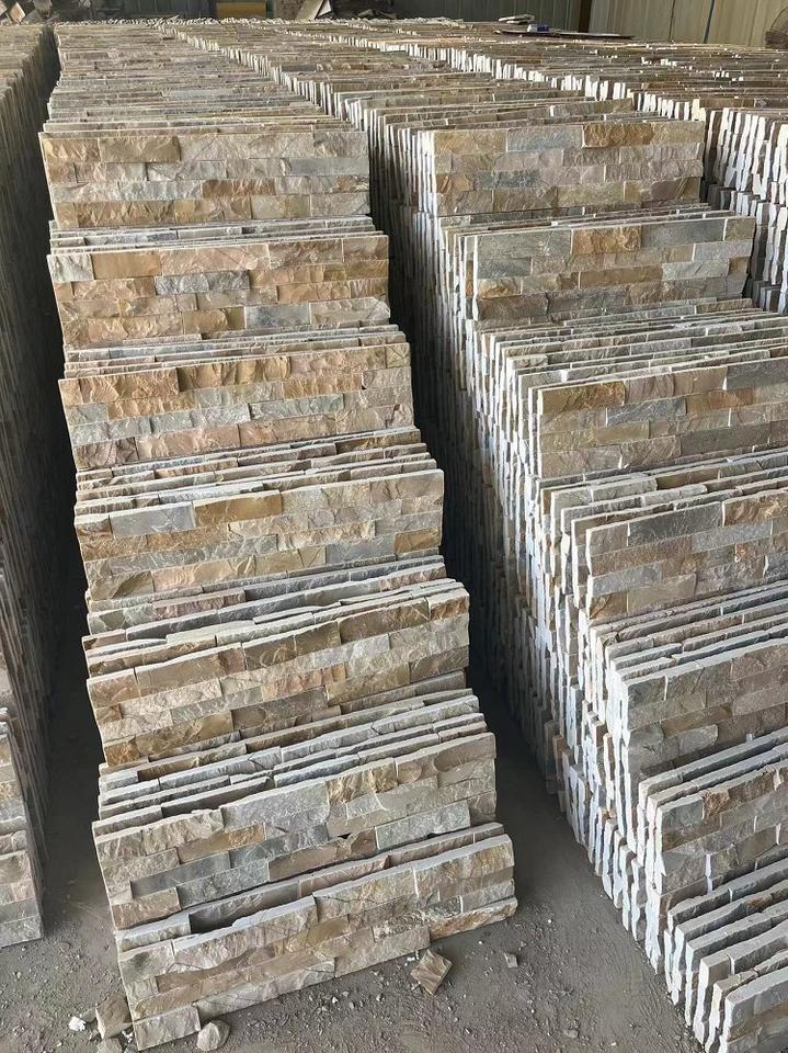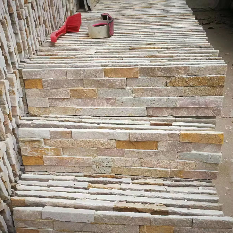Design moderno Beige ardesia cultura parete piastrelle di pietra naturale sottile impiallacciatura di pietra antiacido esterno esterno pannelli di rivestimento Modulare