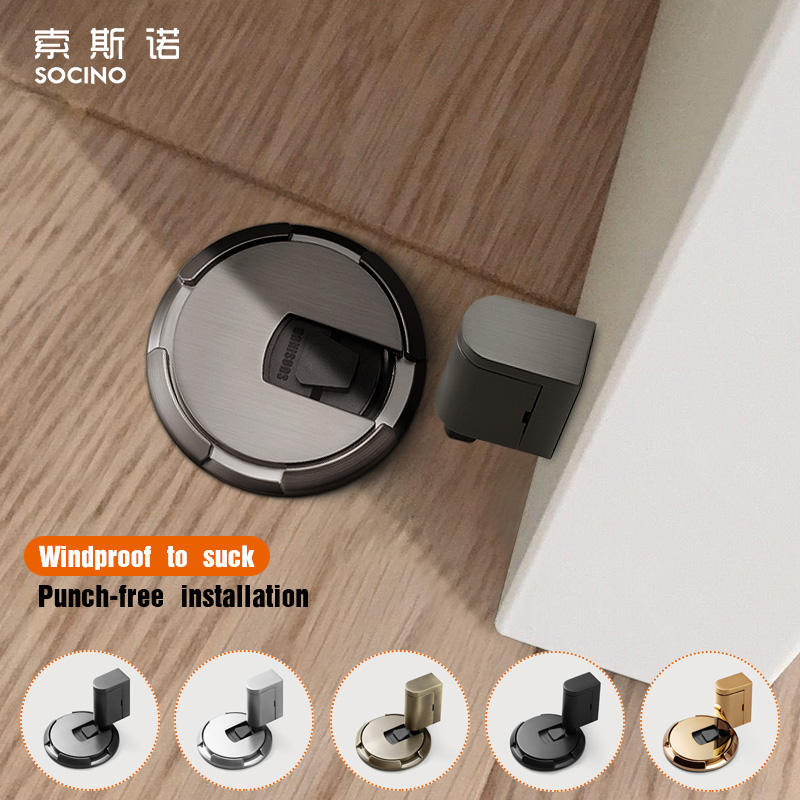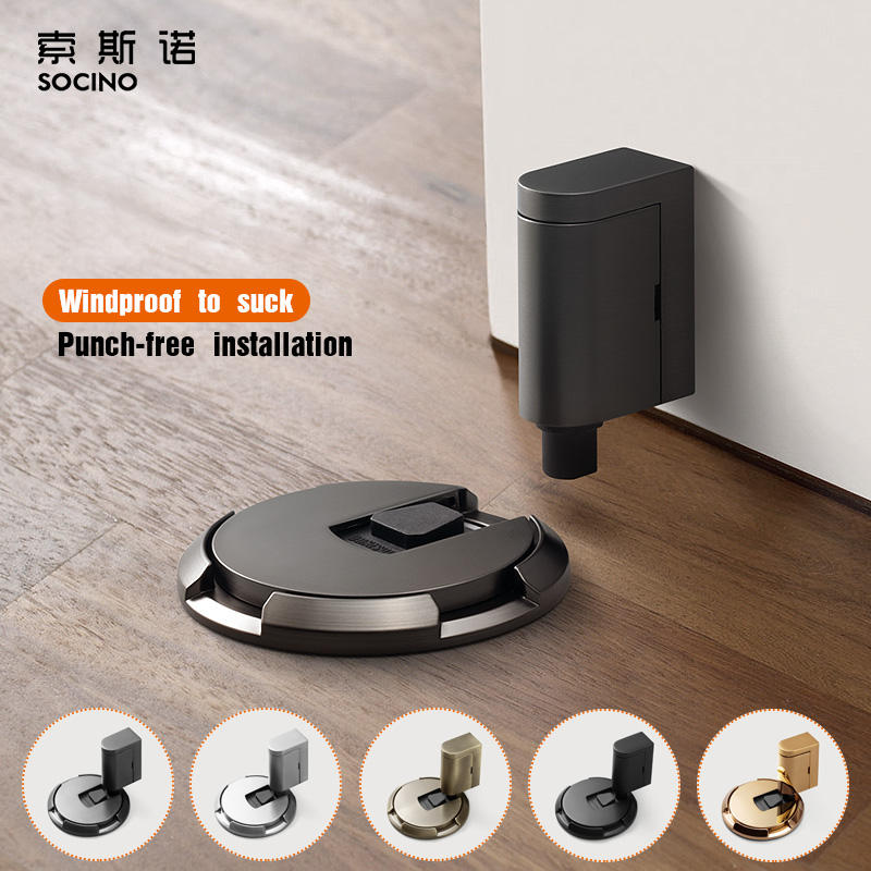 Fermaporta Moderno in Lega di Zinco Nera, Installazione Senza Foratura per Porte in Acciaio Inox e Legno, per Hotel, Arredamento, Sala da Pranzo, Casa