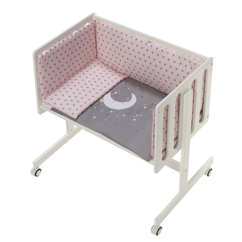 Modern Design CO-SLEEPING Crib in White Beech Bedding Garment and Mattress Set-MOD. UNIVERSO for Babies and Kids