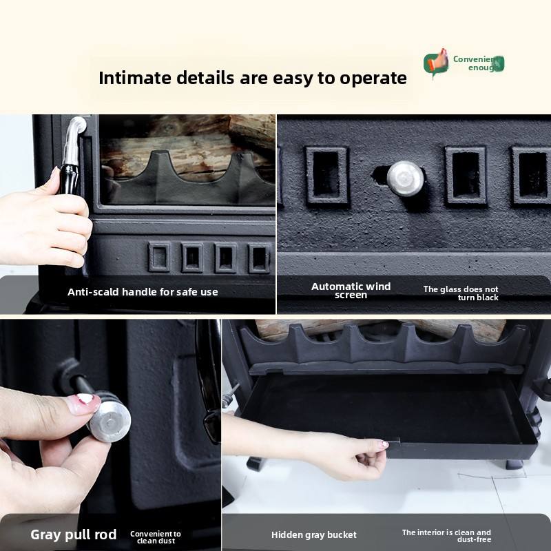 Modern Design Cast Iron Wood-Burning Stove Real Fire Fireplace for Home Use for Rural Villa & Living Room Heating