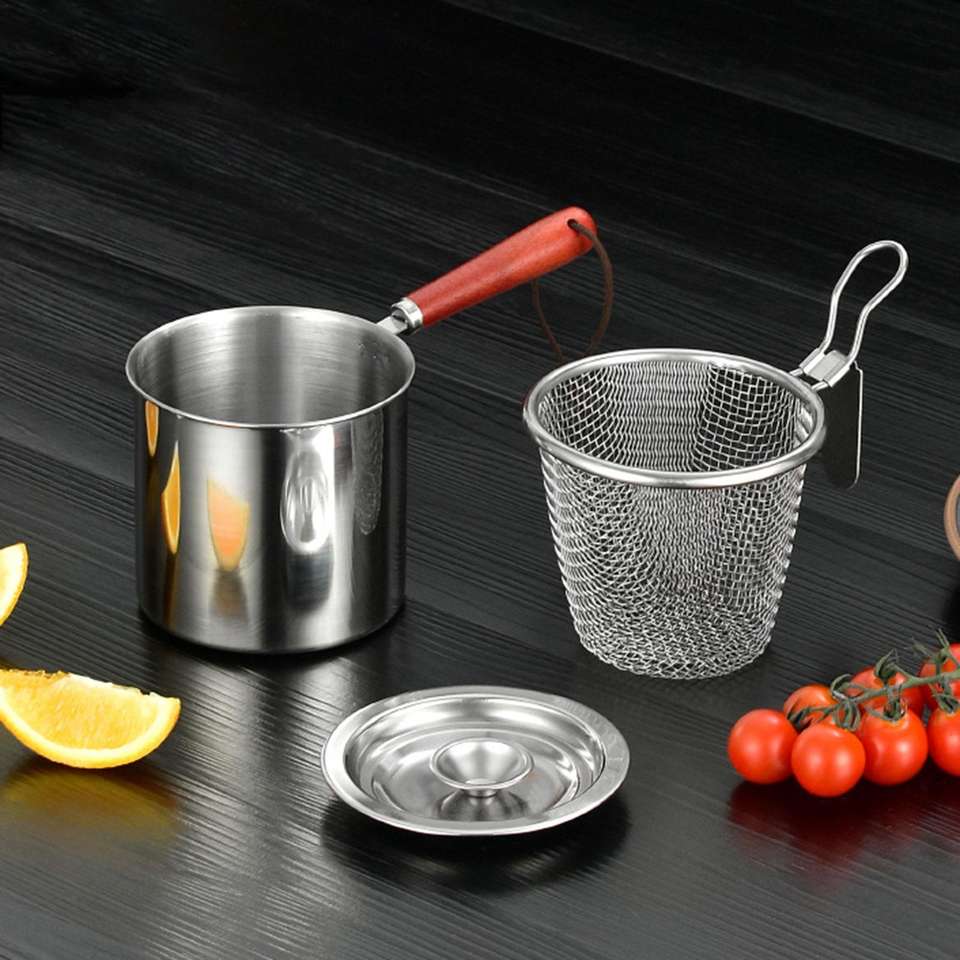 Design moderno padella per friggere per uso ristorante all'aperto patatine fritte in alluminio antiaderente e pentola di metallo con coperchio in vetro e maniglia