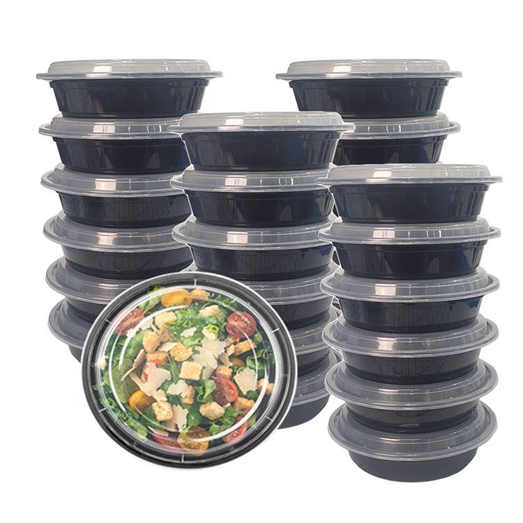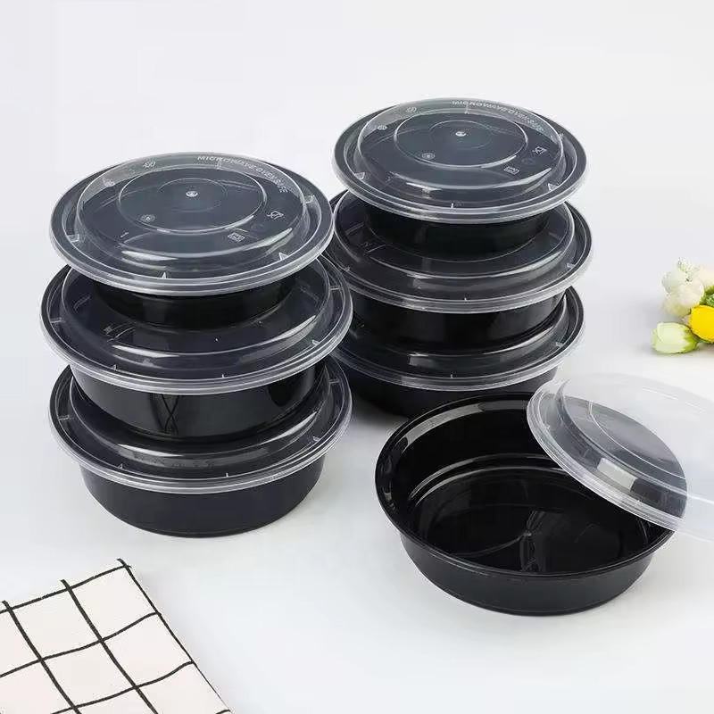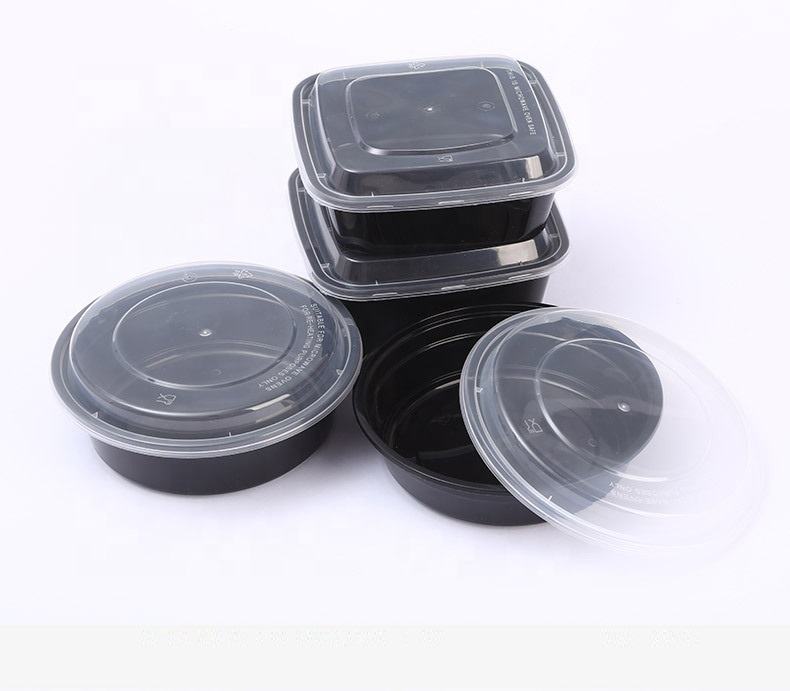 Contenitori Monouso in Plastica per Preparazione Pasti dal Design Moderno, 18OZ 24OZ 32OZ 38OZ, Adatti al Microonde, Neri, Rettangolari/Rotondi