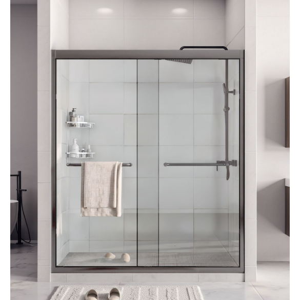 Modern Design Double Sliding Door 6mm Clear Tempered Glass Explosion-Proof Film Gunmetal Grey Aluminum Frame Durable Brass