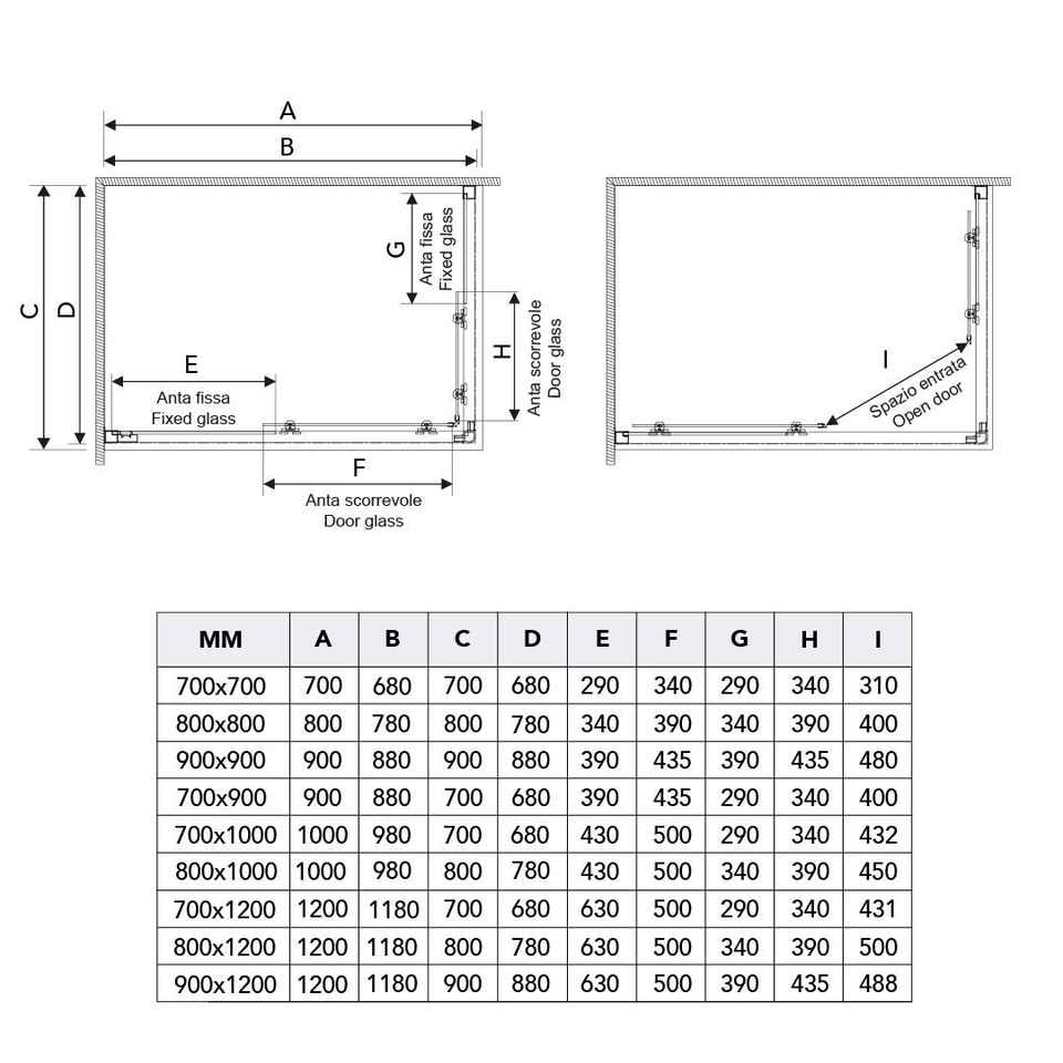 Box Doccia Moderno Ferrara 70x100 con Profilo Piatto, Set Bagno