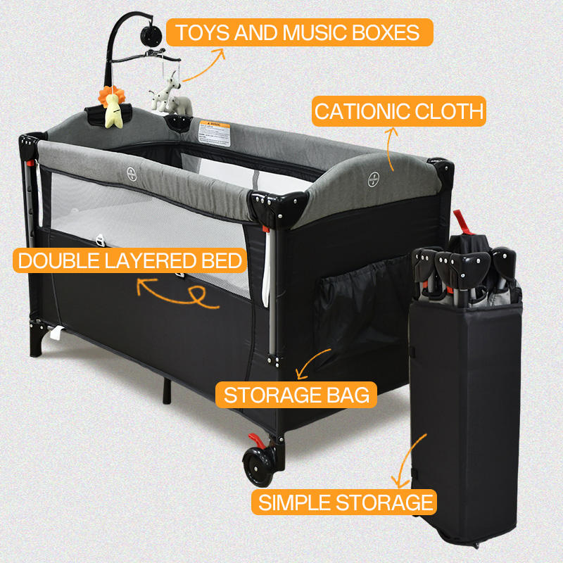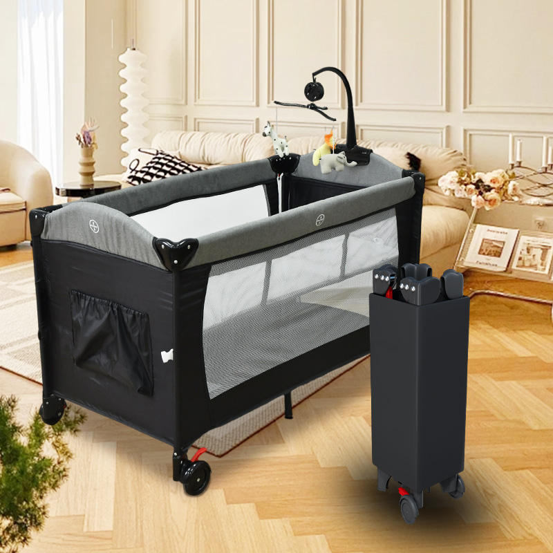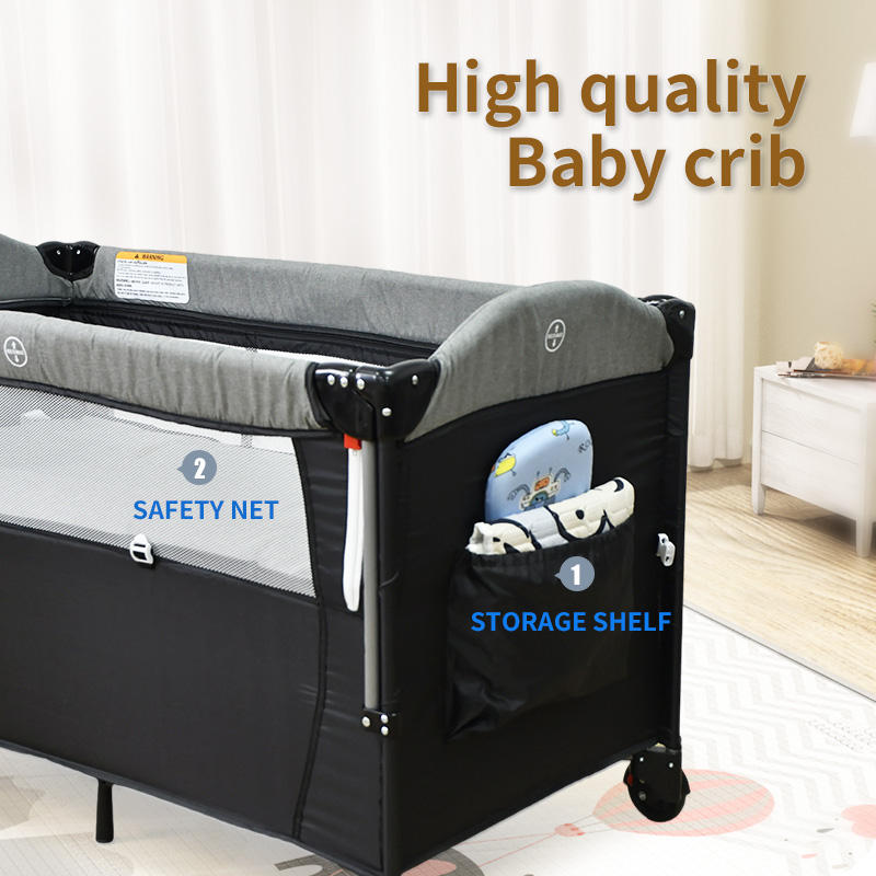 Modern Design Foldable Bedside Crib with Mesh Canopy New Diaper Table Baby Cot for Park Hospital School Dining Living Room Use