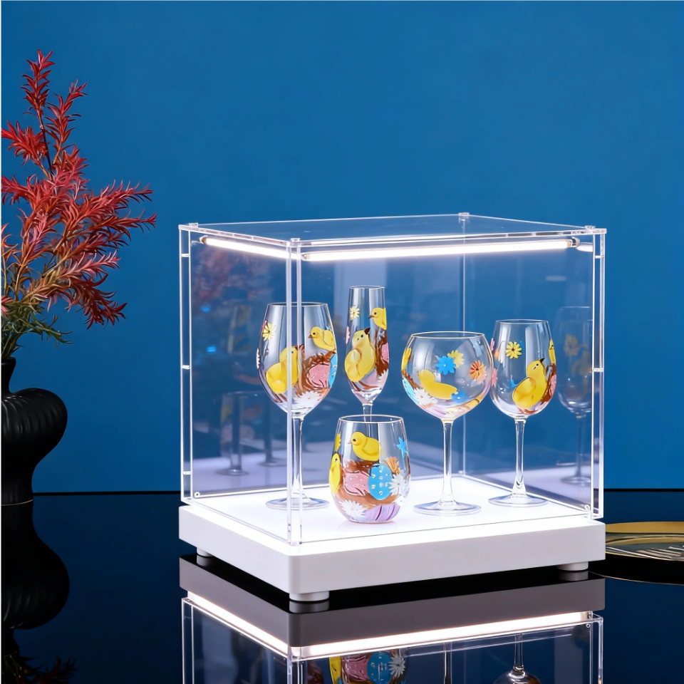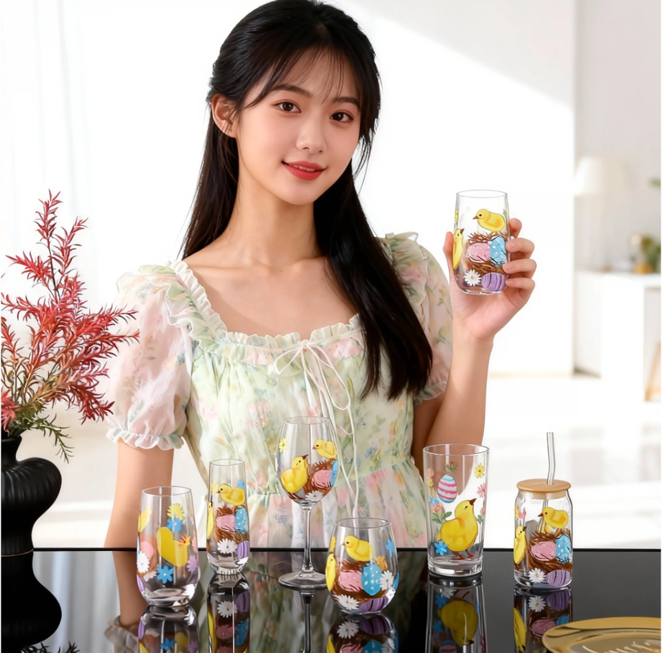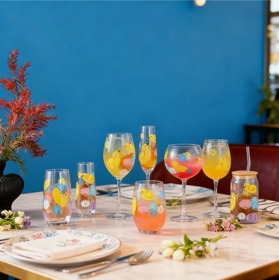 Bicchieri da Vino in Vetro Soffiato a Mano con Design Moderno, Decorati a Mano con Coniglietti Pasquali, Calici Personalizzati