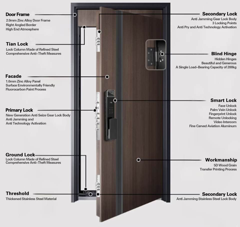 Porta di Sicurezza in Acciaio Antifurto Impermeabile di Alta Qualità dal Design Moderno per Ingressi Esterni ed Edifici