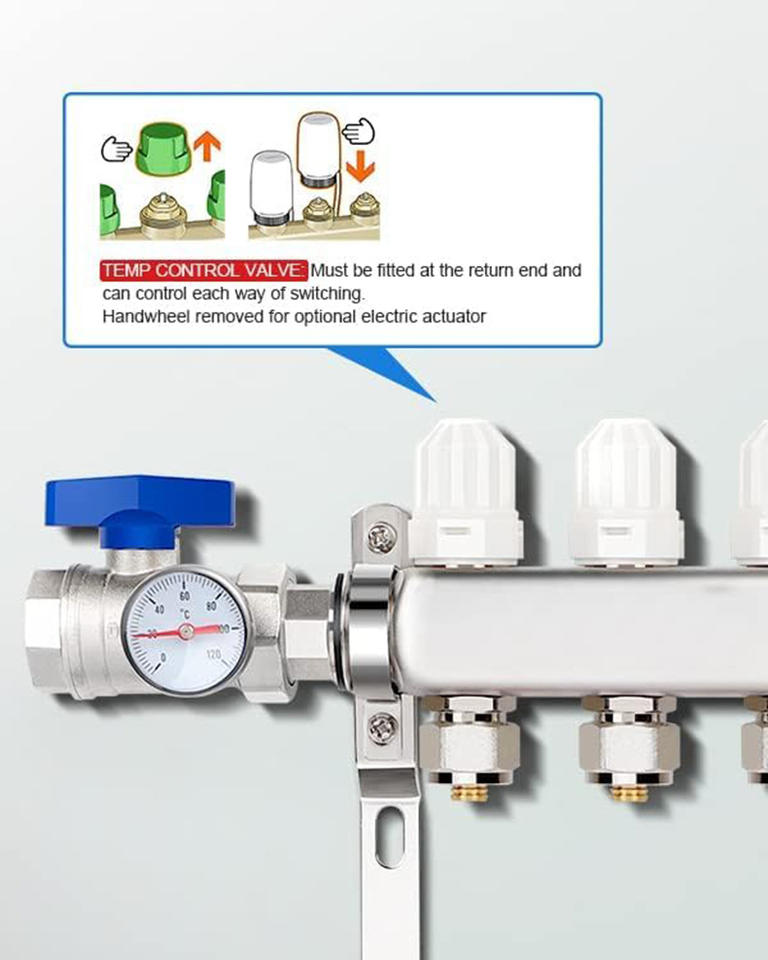 Collettore per Riscaldamento a Pavimento Elettrico in Acciaio Inox Nichelato, Design Moderno, 2-12 Vie, 230V, Facile Installazione per Appartamenti