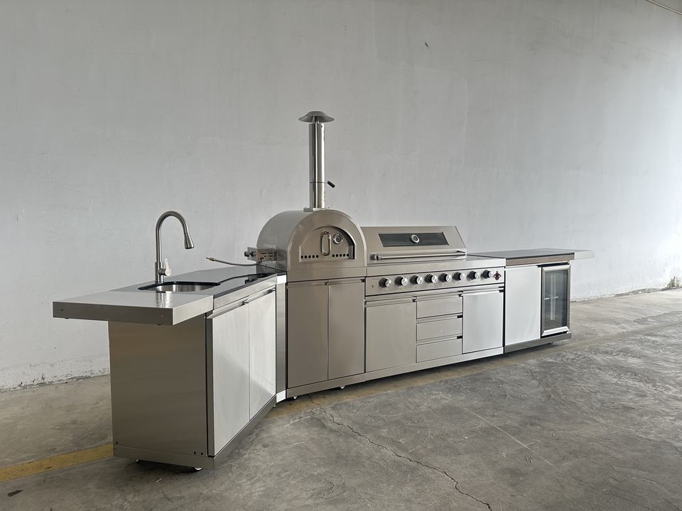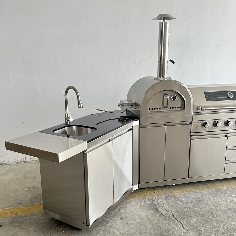 Barbecue a Gas da Esterno dal Design Moderno con Forno Pizza, Bruciatore Laterale e Frigorifero per Divertimento in Famiglia - Angolo Cucina Esterno