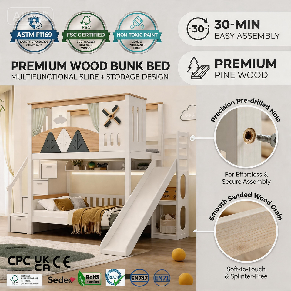 Legno di pino massiccio: Realizzato in legno di pino massiccio, garantendo una struttura robusta e duratura per i mobili dei bambini.