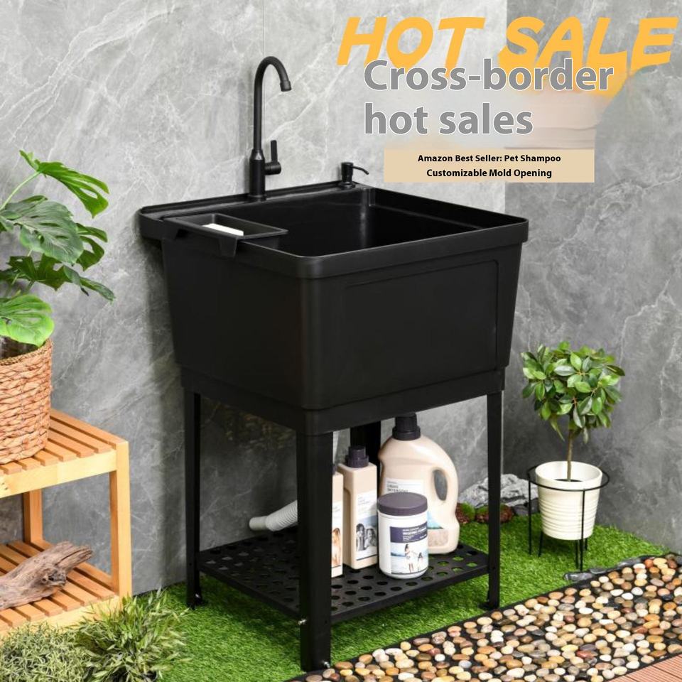 Lavabo Integrato Quadrato in Plastica dal Design Moderno, Lavandino Rinforzato per Uso Domestico, Ideale per il Bagno degli Animali e l'Uso in Balcone