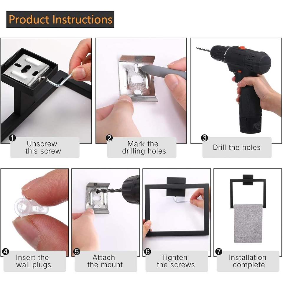 Portasciugamani Quadrato in Acciaio Inox SUS 304 dal Design Moderno, Porta Asciugamani Ispessito con Supporti per Bagno