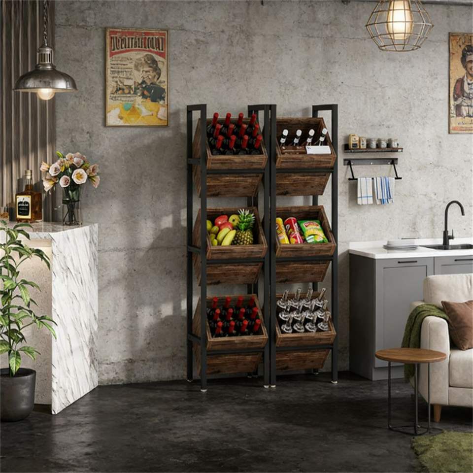 Portabottiglie in Legno a Tre Livelli dal Design Moderno con Cestello Portaoggetti per la Conservazione del Vino