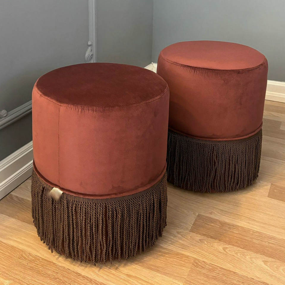 Modern Design Velvet Round Pouf with Tassels Living Room Round Ottoman Dressing Fringes Chairs Makeup Shoes Stool for Bedroom