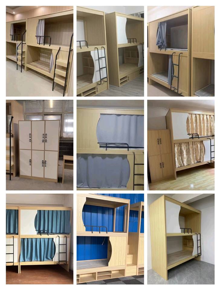 Modern Design Wooden Youth Hostel Bunk Bed High and Low Apartment Bed for Students E-Sports School Dormitory Bedroom Hotels
