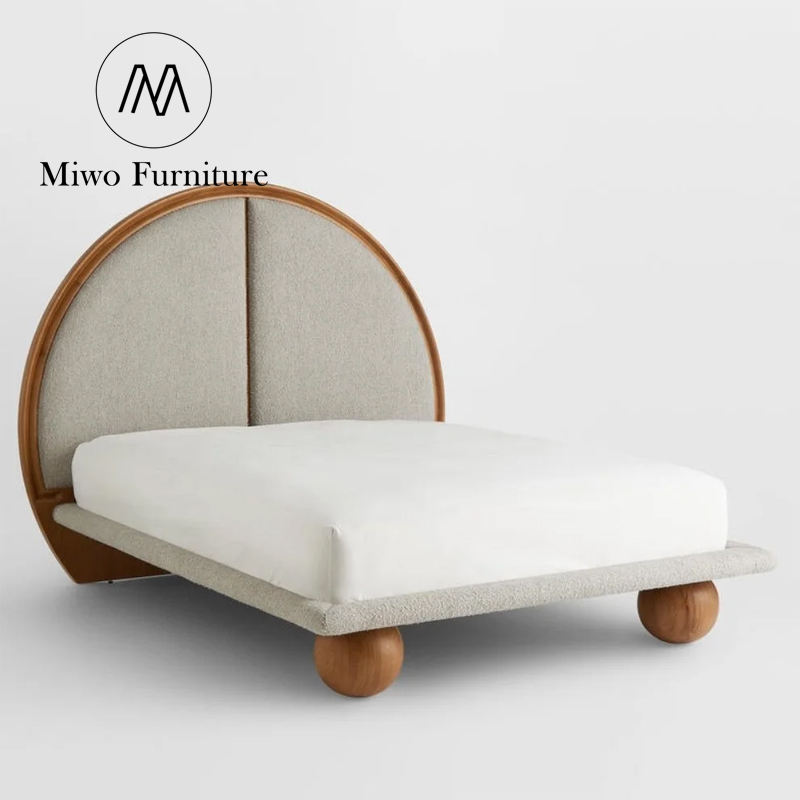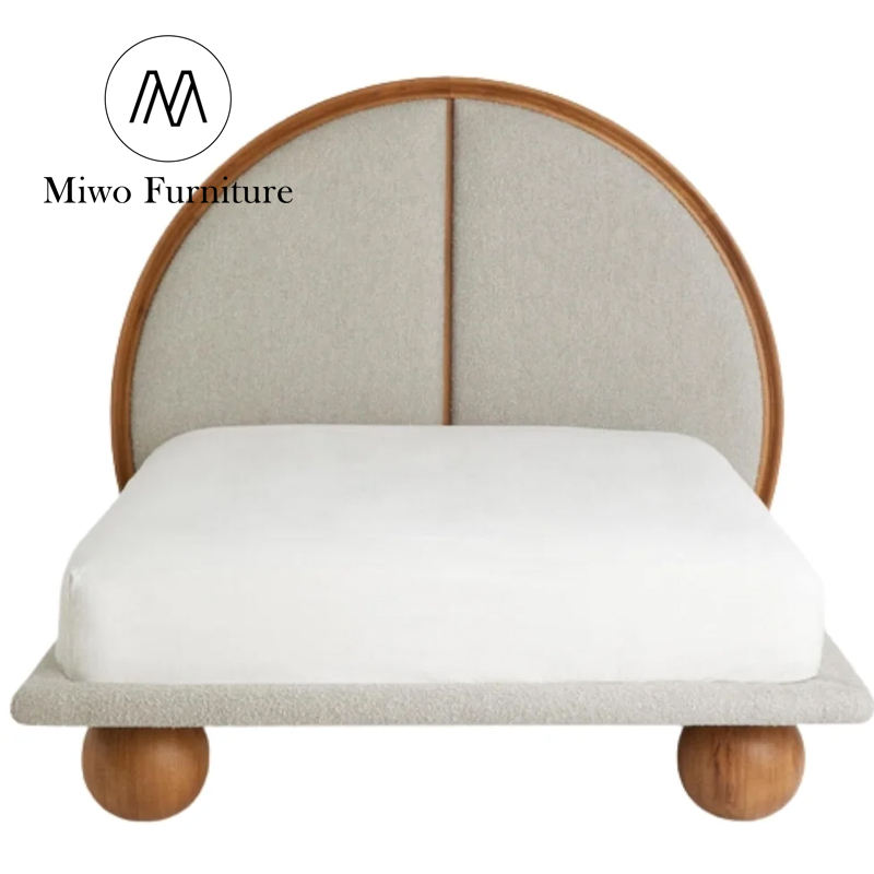 Modern Designer French Bedroom Villa Homestay Solid Wood Upholstered Double Bed Hotel King Size Wooden Round Headboard Bed