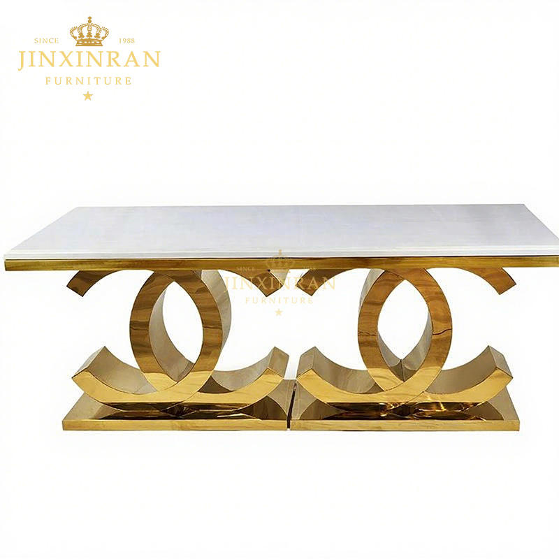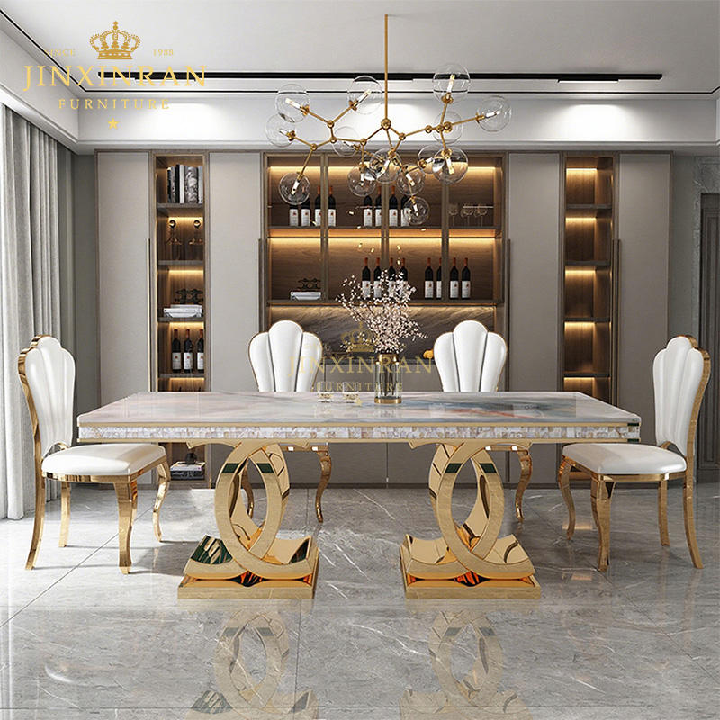 Modern Dining Table 6 Seats Luxury Golden Stainless Steel Frame Rectangle Marble Dining Table