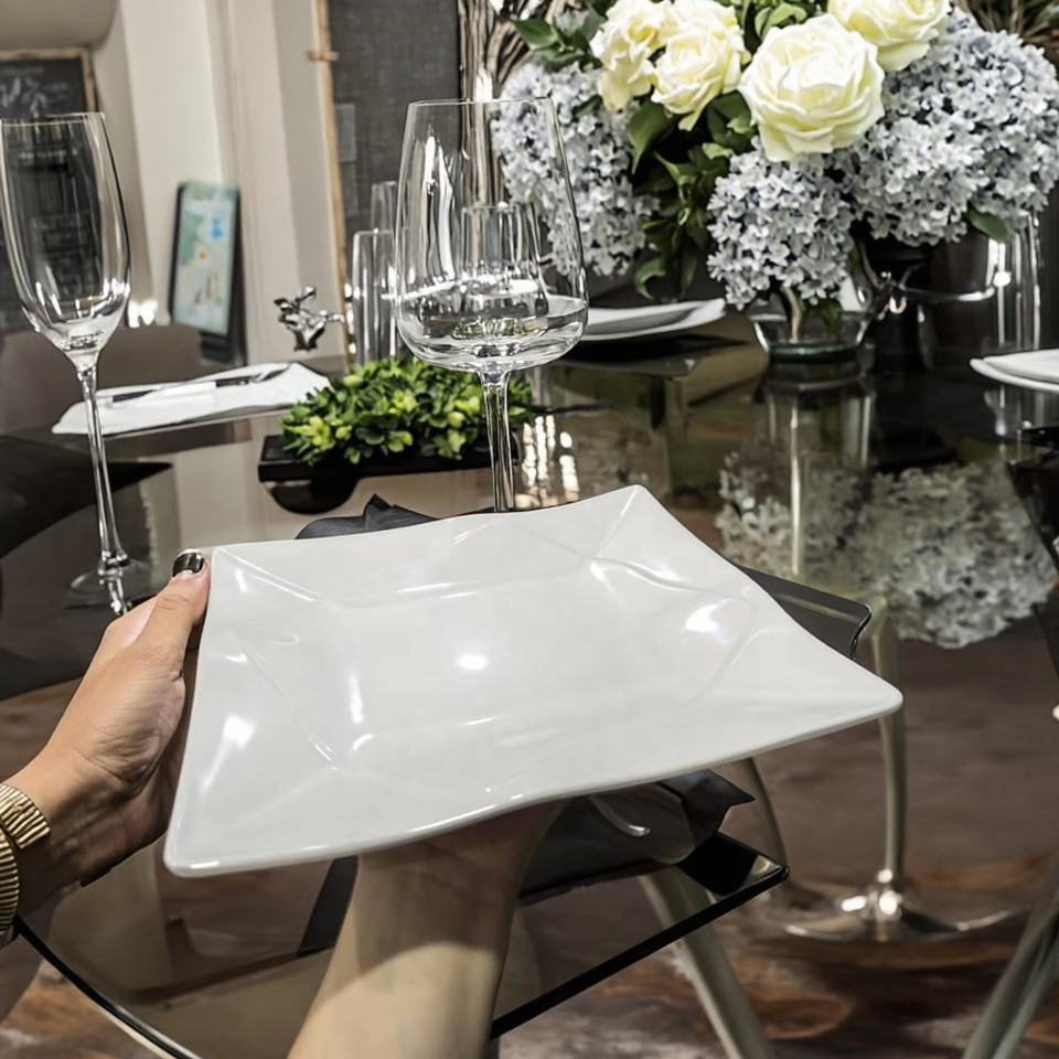 Modern Dishes Service with logo Catering Melamine Plates Dinner Ware White square Melamine Dinner Plate