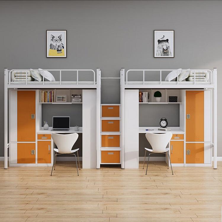 Nome del prodotto:Letto a Castello con Struttura in Metallo Loft, Armadietto Portaoggetti e Tavolo da Studio