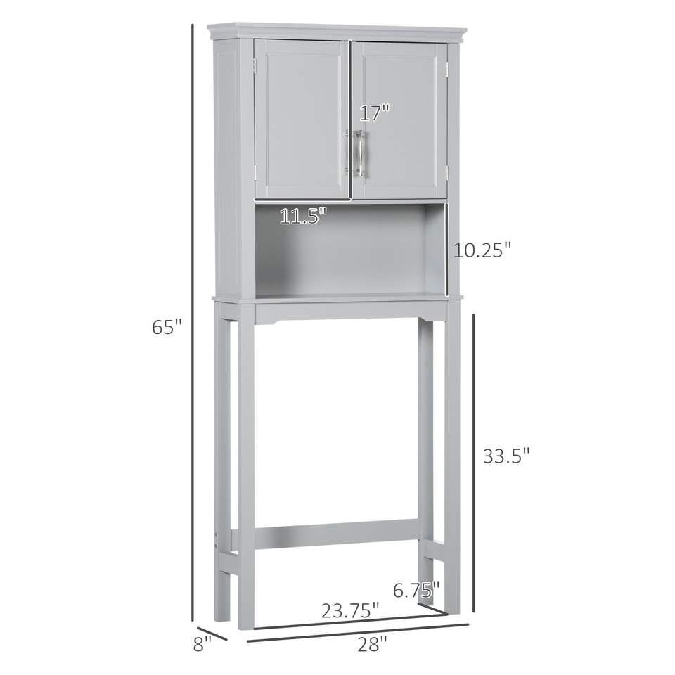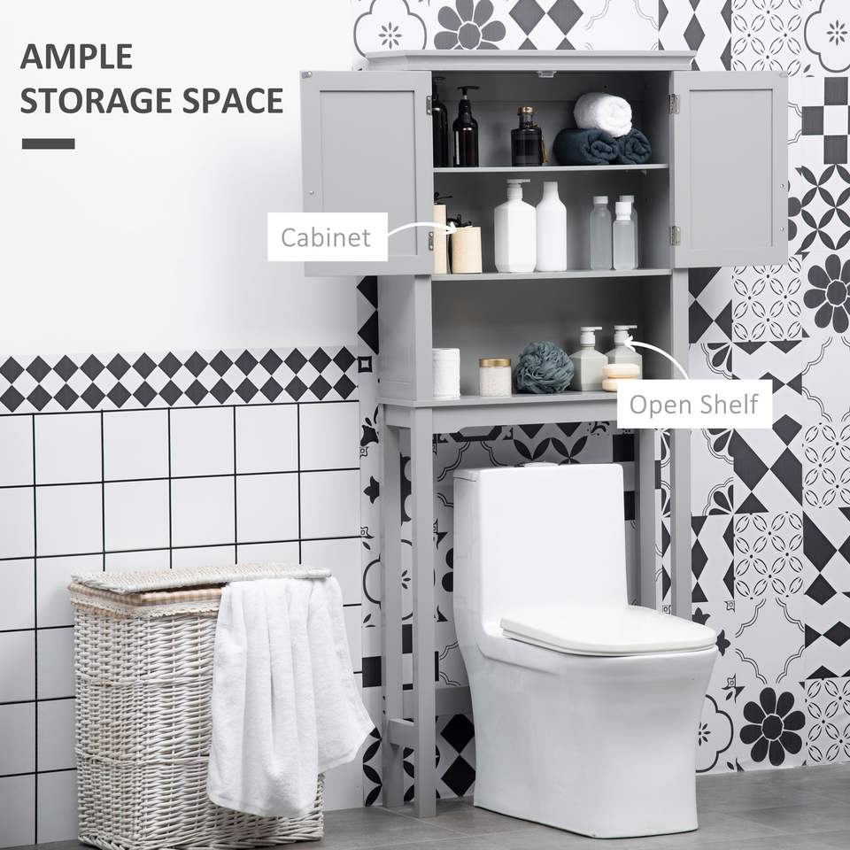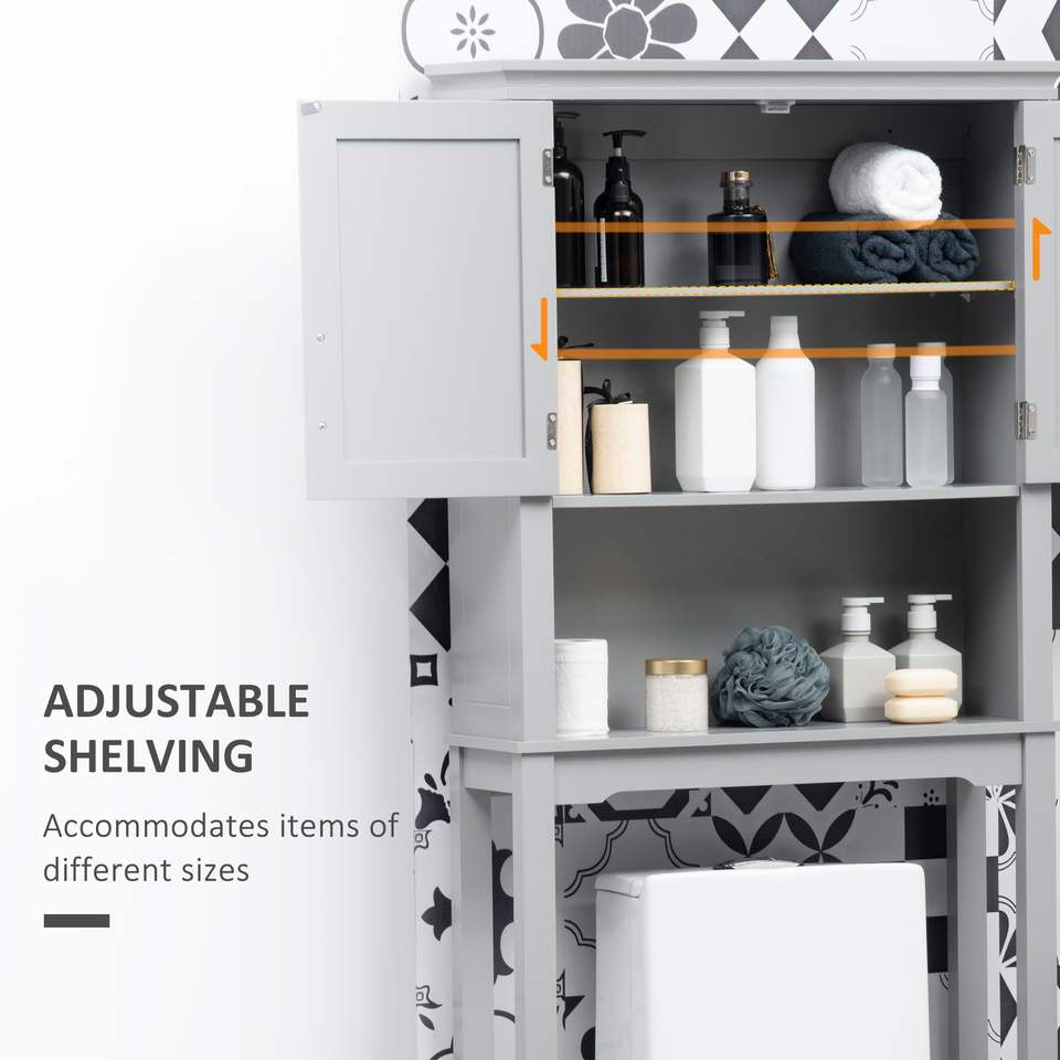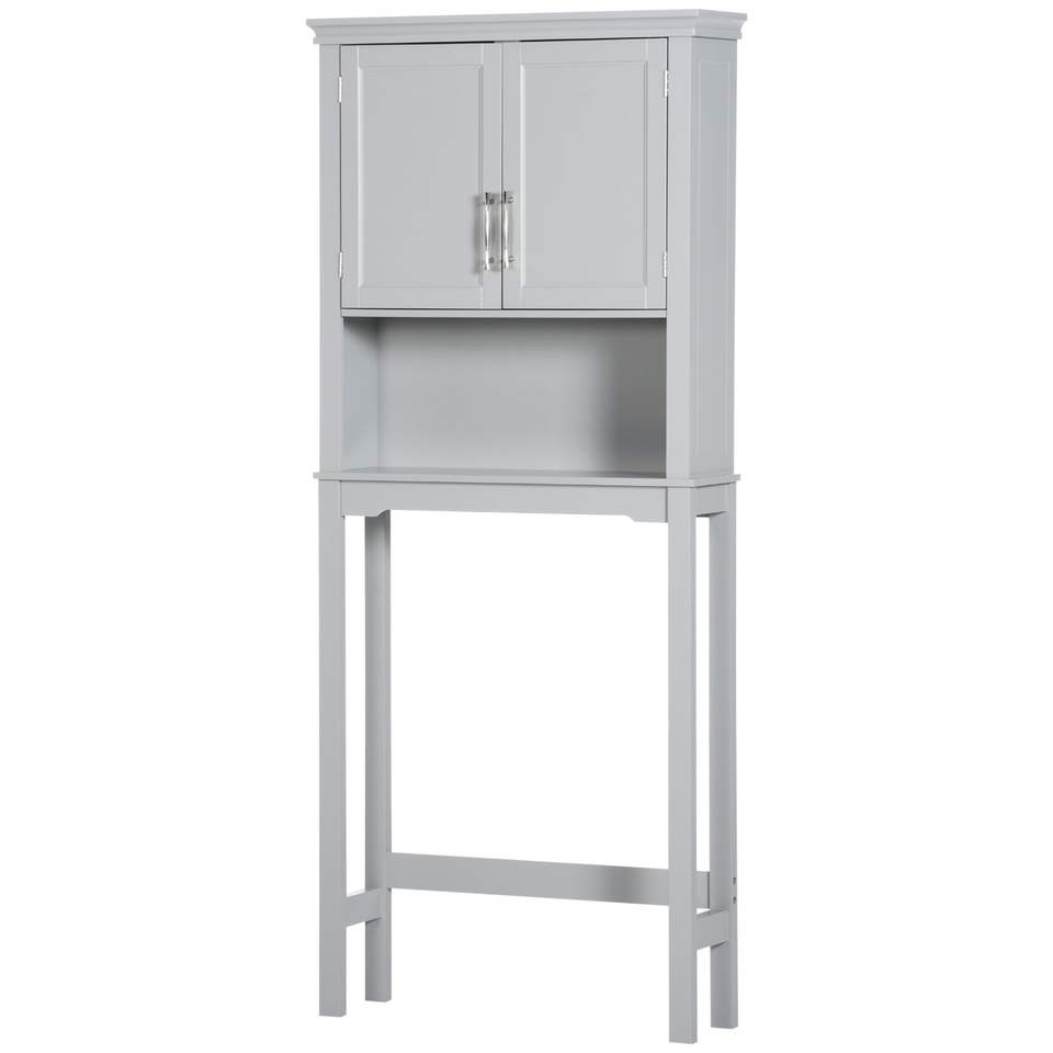 Mobiletto Moderno a Doppia Anta da Posizionare Sopra il WC, Organizzatore per Bagno Grigio con Ripiano Interno Regolabile