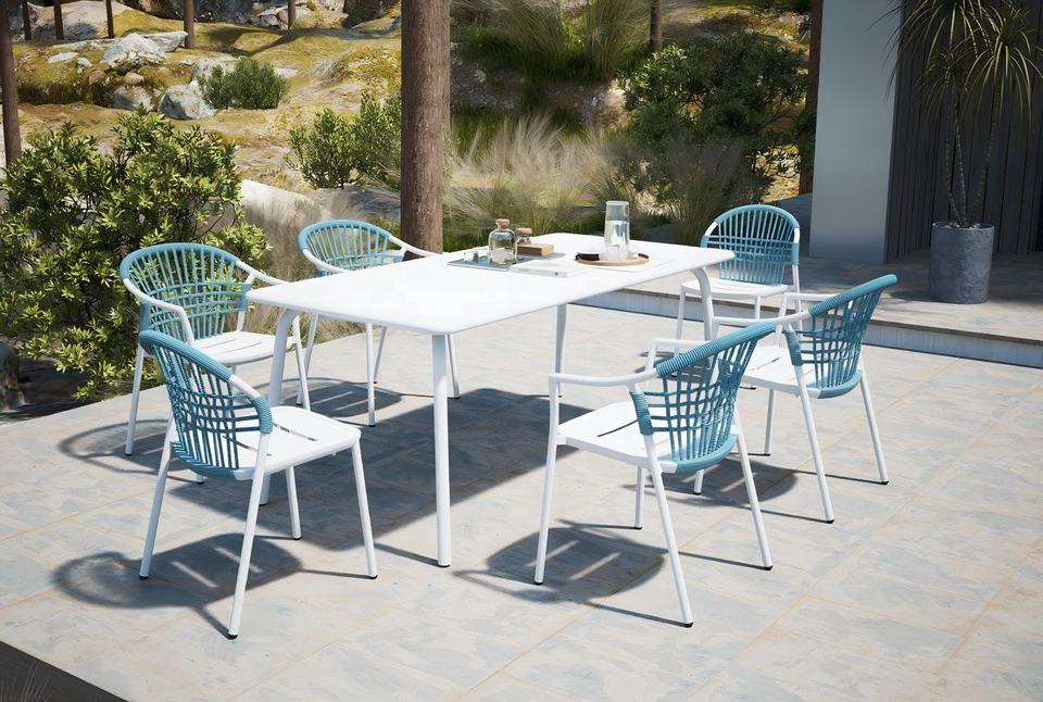 Set di Mobili da Esterno Moderni e Durevoli in Corda Intrecciata con Telaio in Alluminio, Protezione UV, Facile Manutenzione, 6 Posti, per Cortile, Hotel e Uso Commerciale
