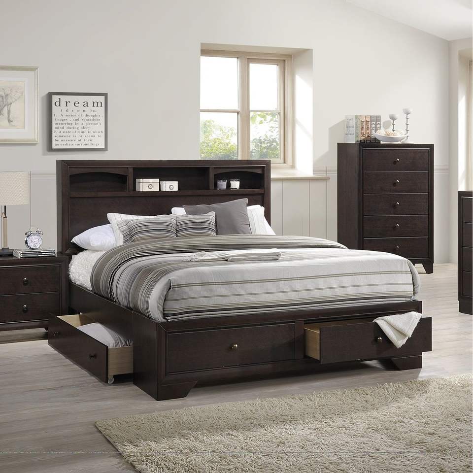 Letto matrimoniale moderno con cassetti contenitore, 1 pezzo (solo letto), include testiera e pediera per lo stoccaggio in camera da letto