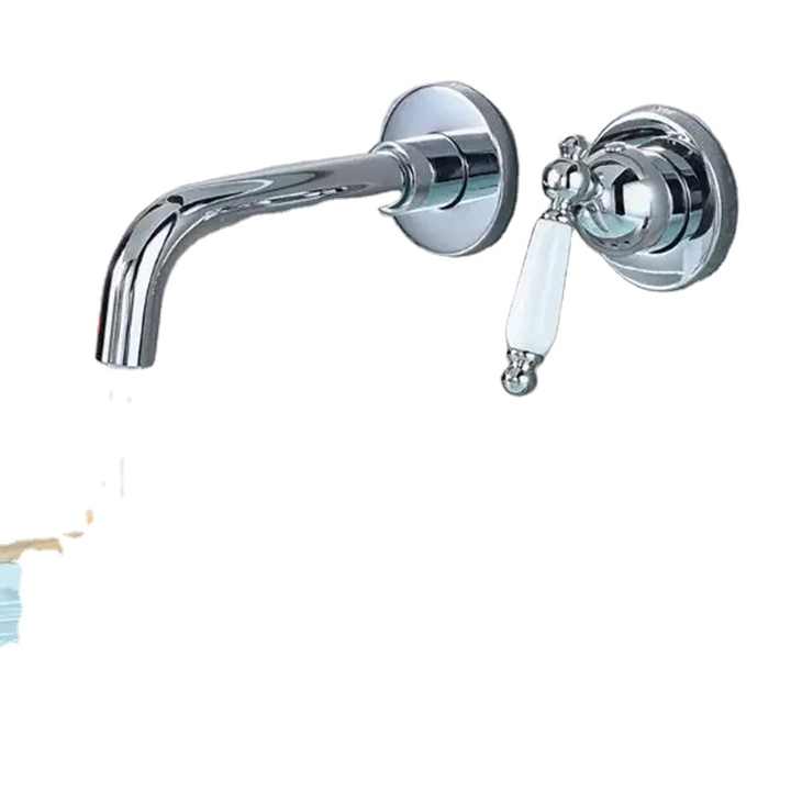 Rubinetto Moderno Ecologico a Parete per Lavabo, Finitura Cromata, Monocomando, 2 Fori, Accessorio per Bagno