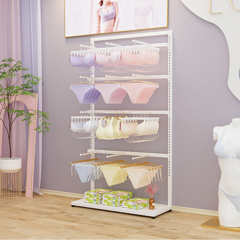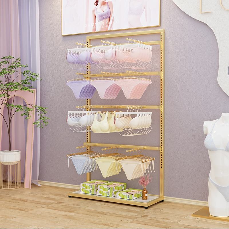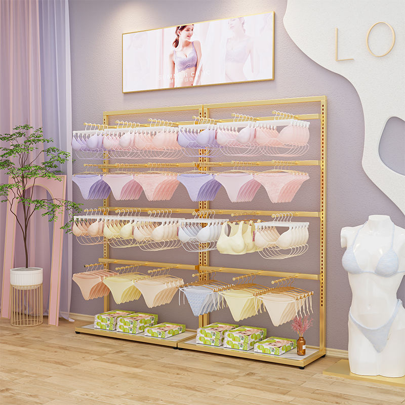 Armadietto moderno eco-friendly in acciaio per la visualizzazione di reggiseno pigiama calzini da pavimento per intimo abbigliamento nel negozio di abbigliamento