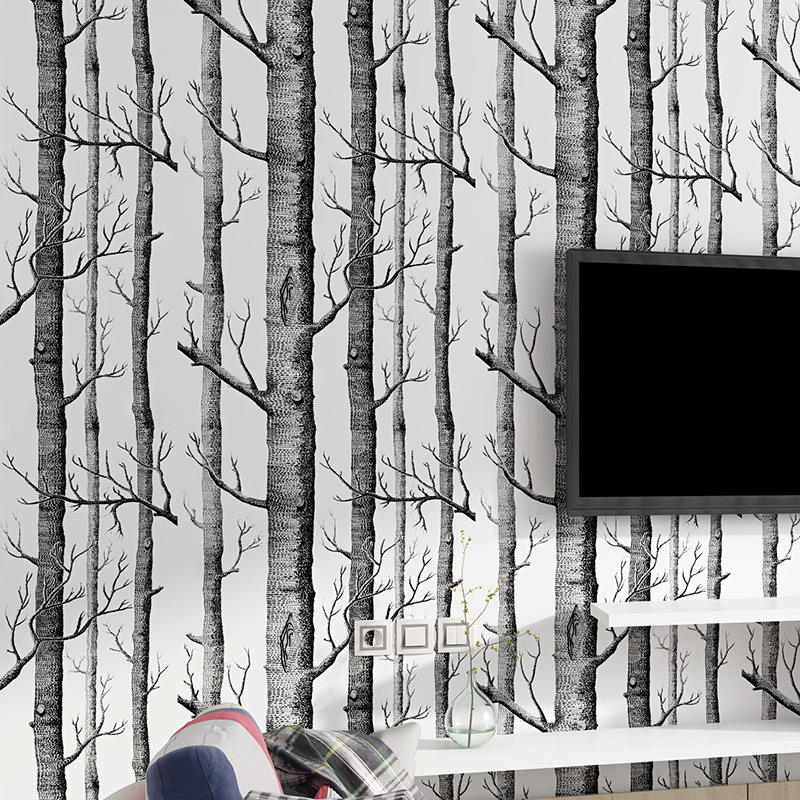 Moderno elegante albero di faggio Non tessuto carta da parati astratto nero rami bianchi impermeabili soggiorno TV sfondo per appartamenti