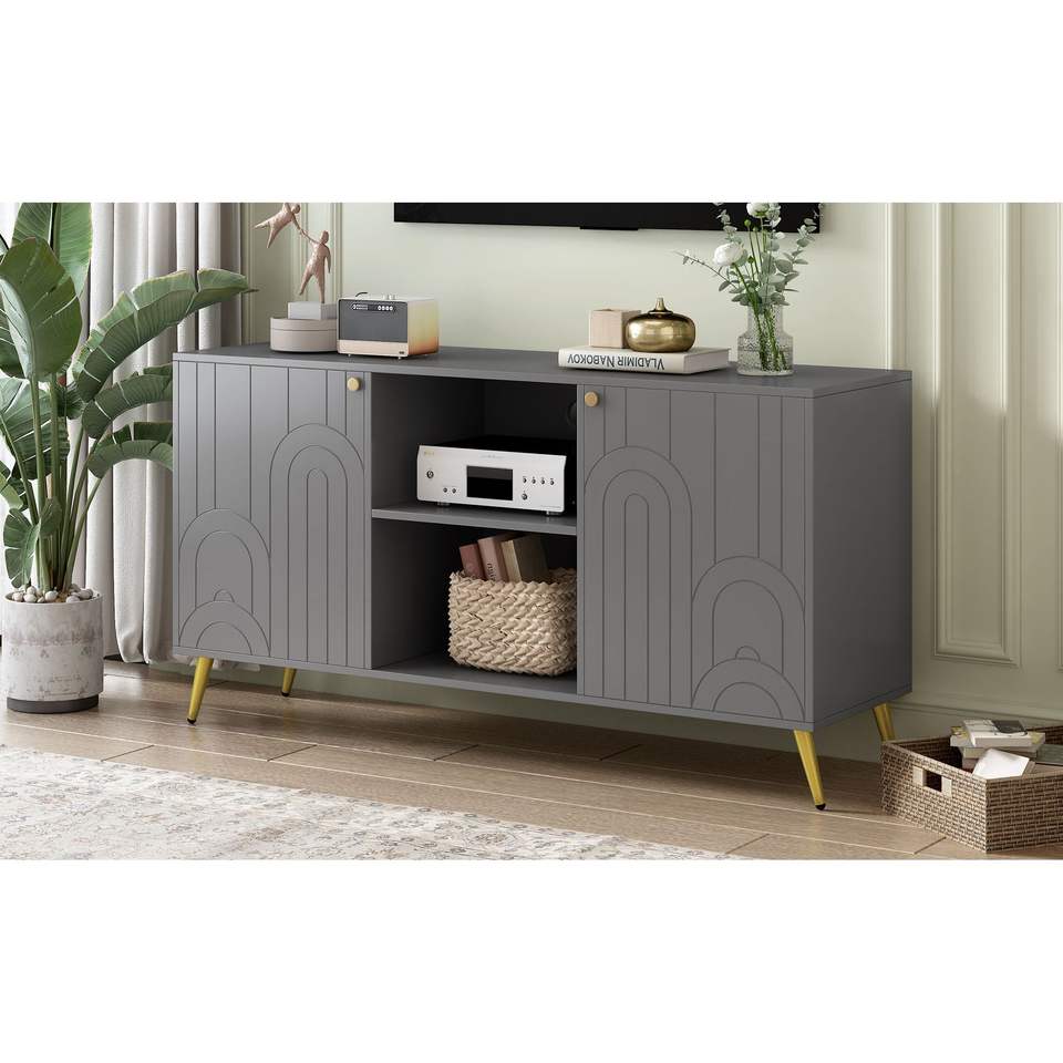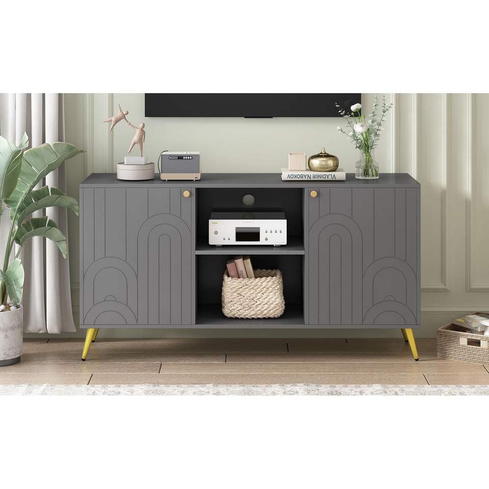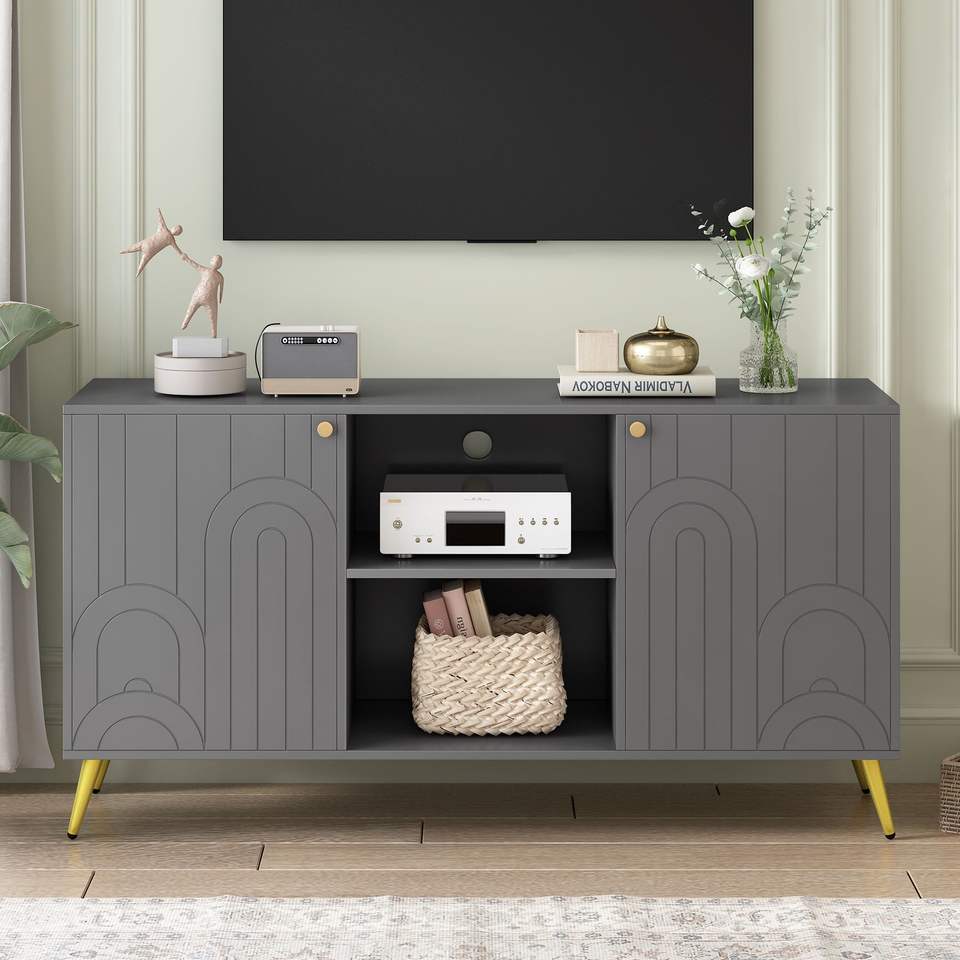 Mobile TV Moderno per TV da 55 Pollici con Ripiano Regolabile, Gambe in Metallo, Dispositivo Anti-ribaltamento e Design Elegante