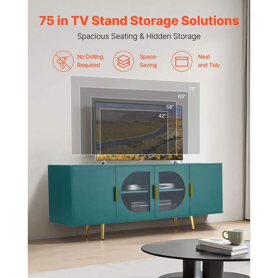 Modern Entertainment Center TV Stand for TVs up to 75 in with Glass Doors