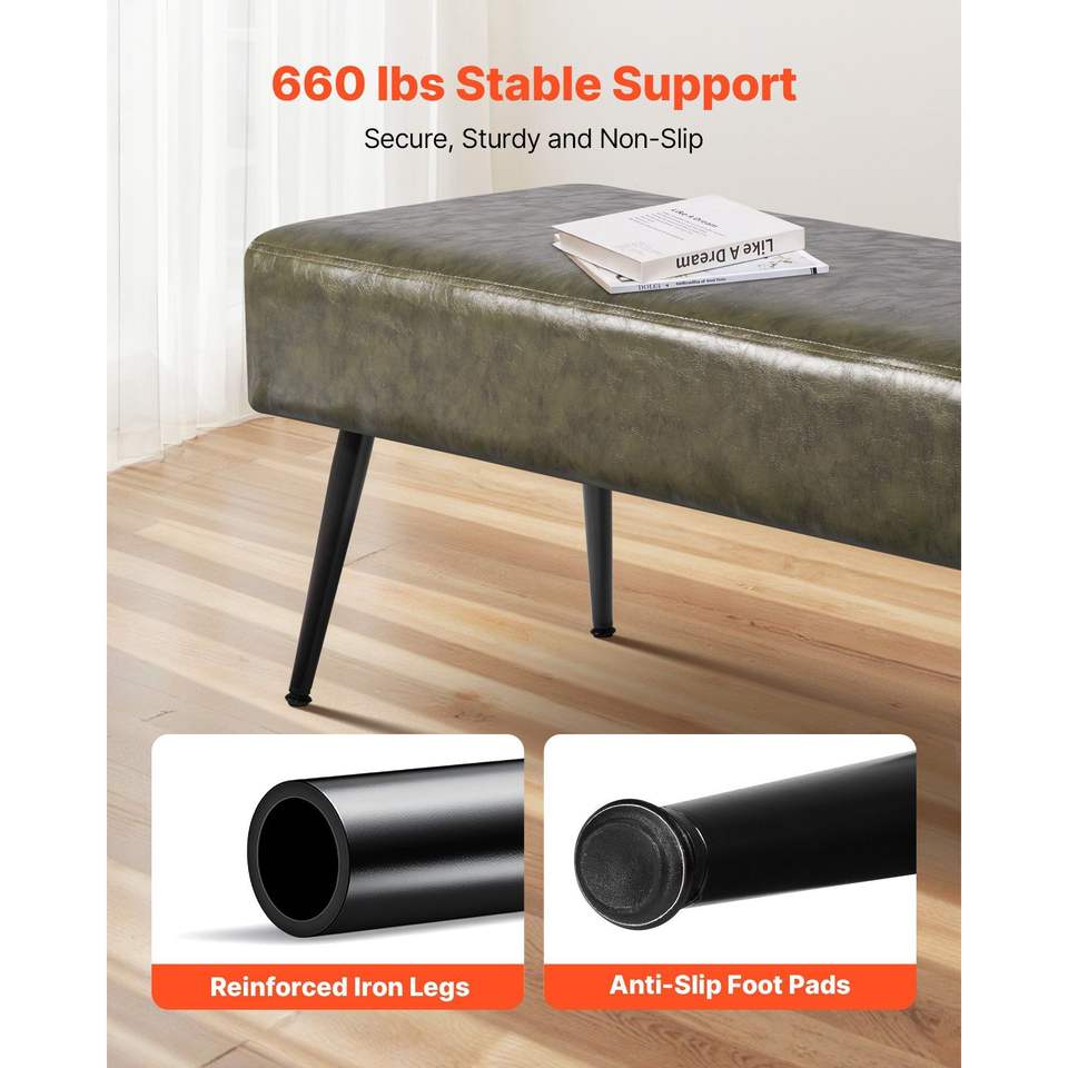 Panca Moderna in Pelle PU con Gambe in Metallo, Seduta Imbottita per Ingresso, Arredamento Contemporaneo per Camera da Letto e Soggiorno