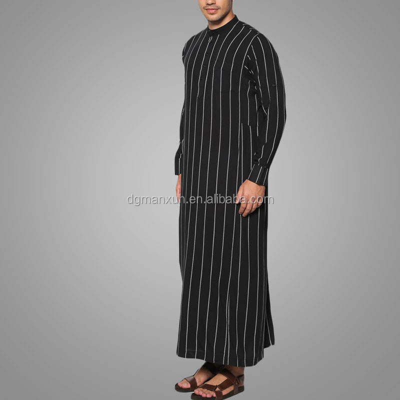 Moderno etnico semplice design a righe uomo jubah uomini musulmani thobe abbigliamento islamico elegante daffah