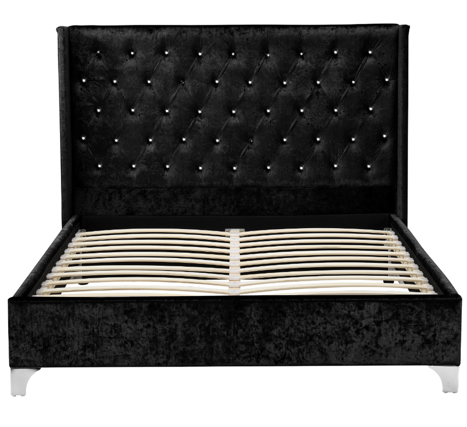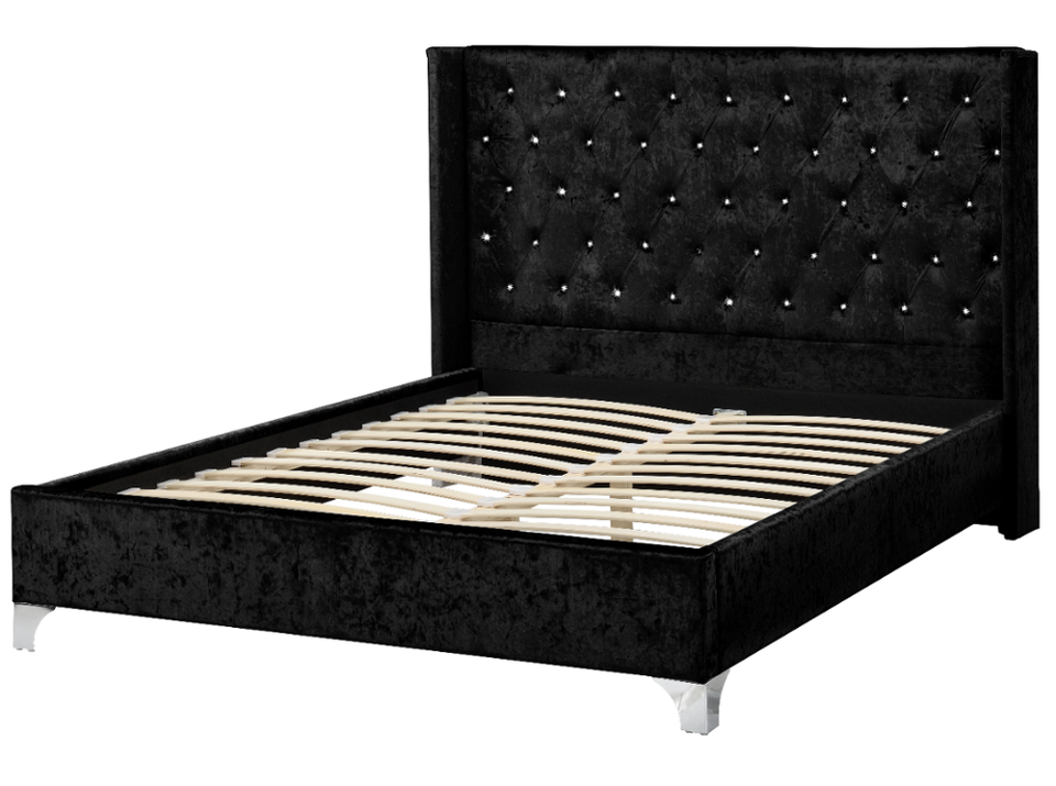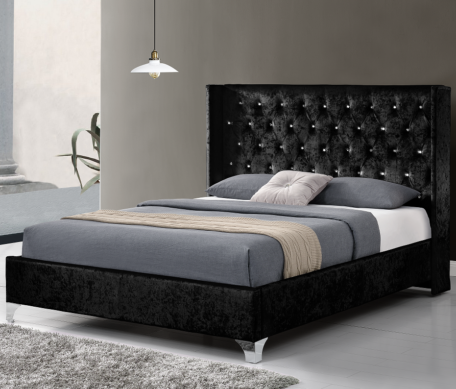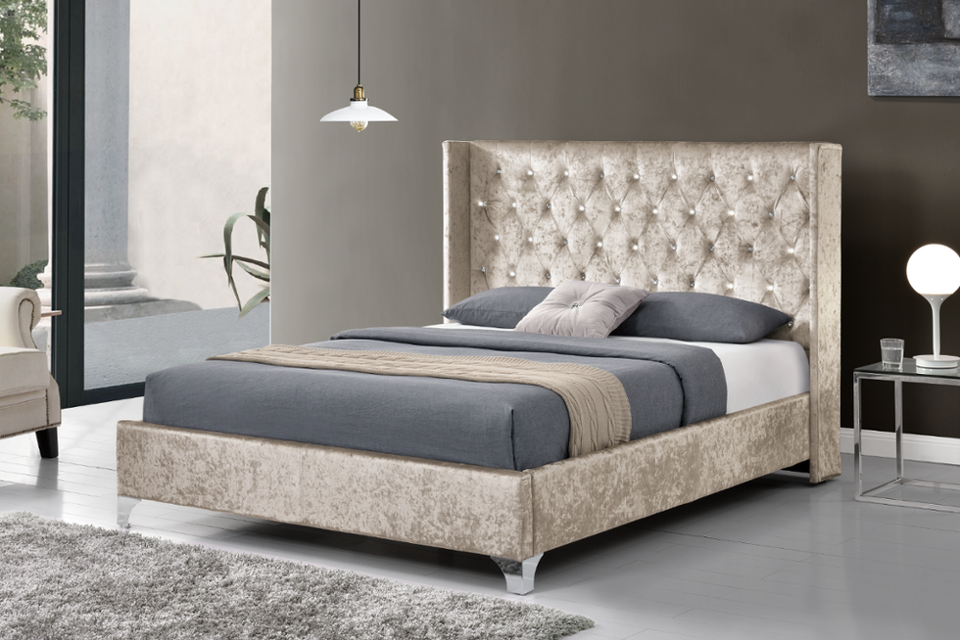 Design europeo moderno doppio letto con piattaforma King-Size in velluto frantumato morbido rivestimento diamantato bottoni testiera alare più recente
