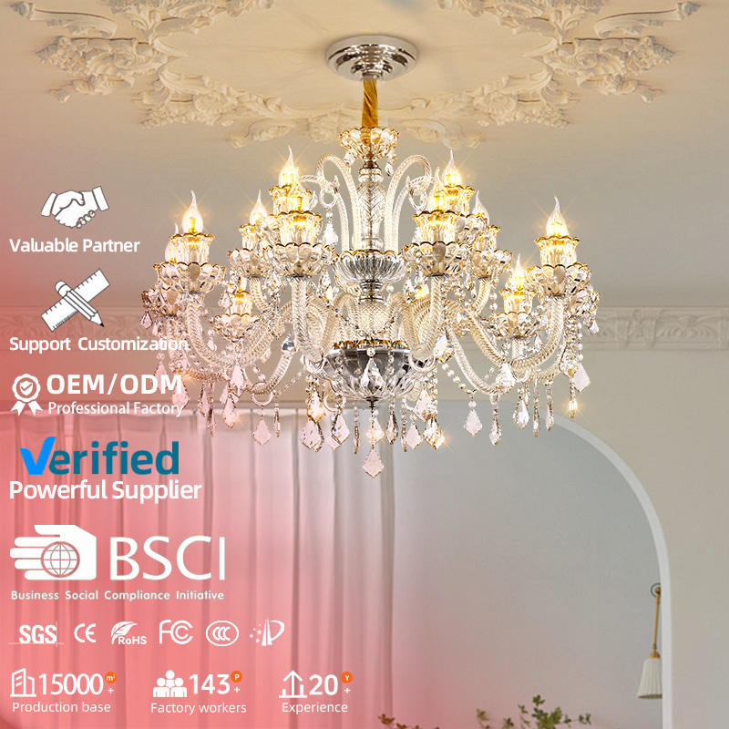 Luce classica del lampadario di cristallo della moderna Villa di lusso europea per la lampada pendente dell'hotel del salotto altezza regolabile appesa