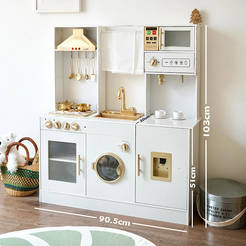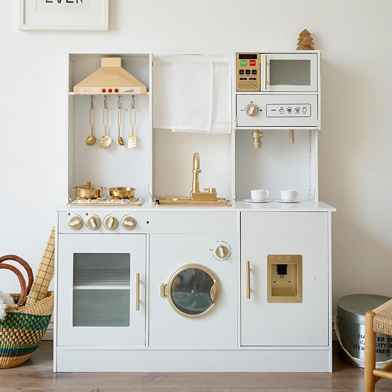 Cucina Giocattolo d'Imitazione in Legno per Bambini in Stile Moderno Europeo con Fornello Luminoso