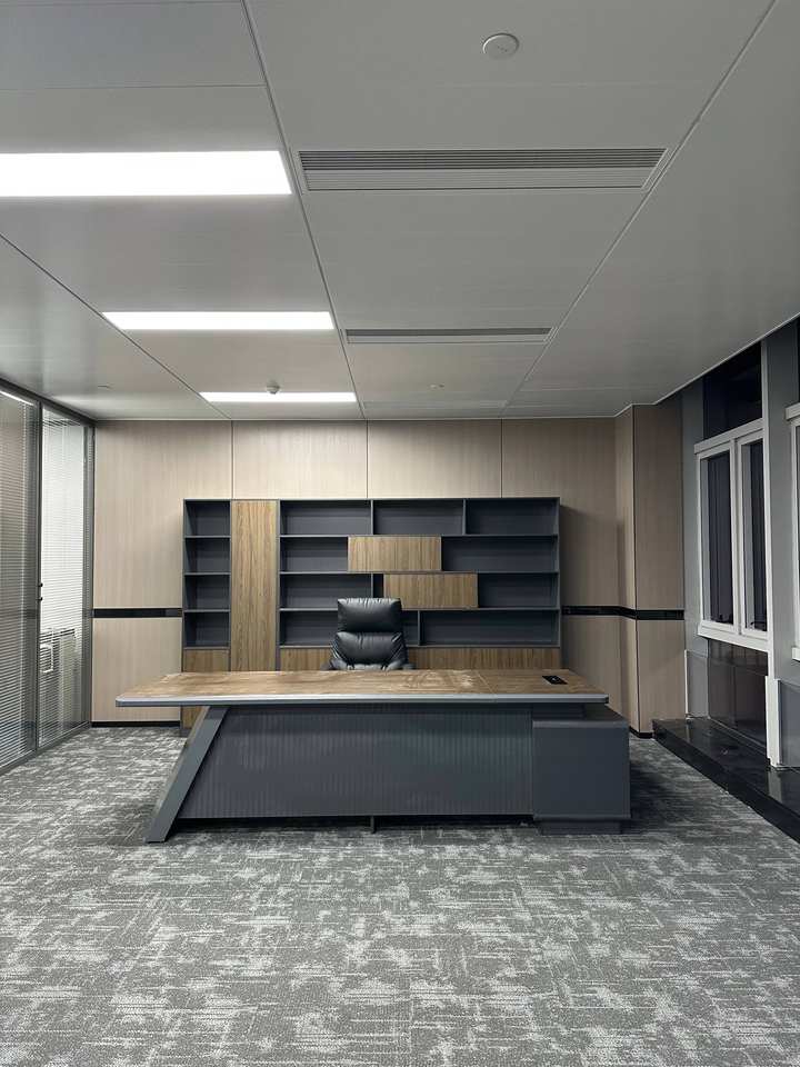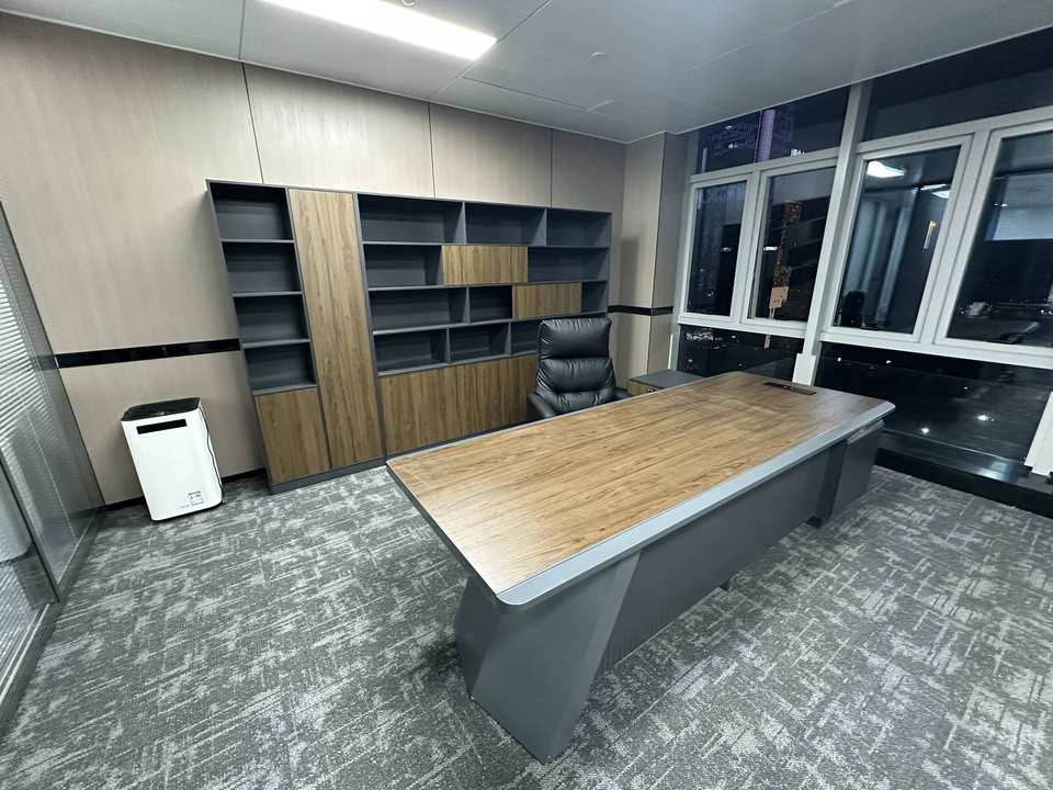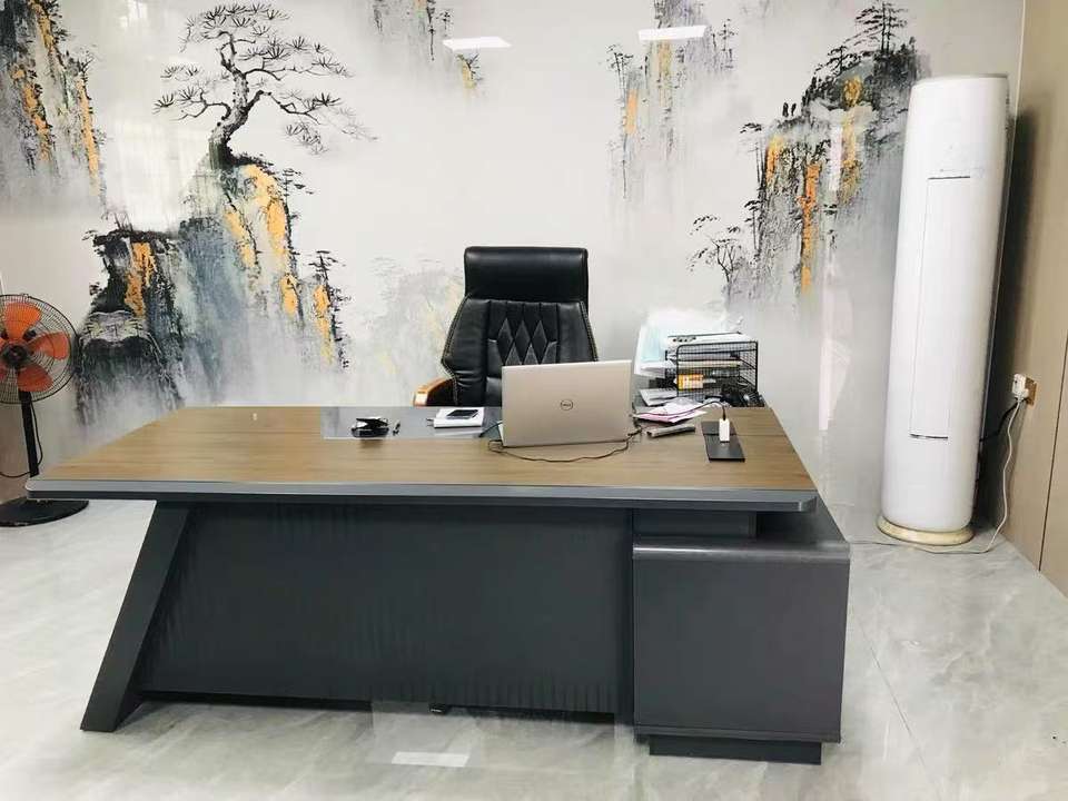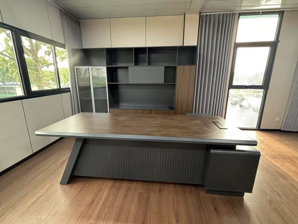 Modern Executive Office Desk with Storage, Luxury Wooden Boss Table, Large Industrial Style Office Furniture Set