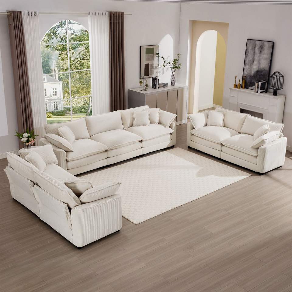 Set di Divani Moderni in Tessuto per Soggiorno, 2 Pezzi: 1 Divano a 3 Posti e 2 Divani a 2 Posti, Seduta Profonda, Collezione 3 Divani