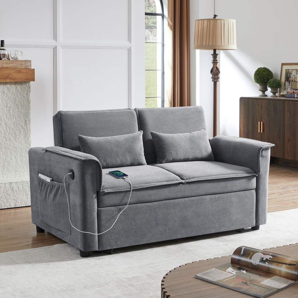 Divano divano letto convertibile in tessuto moderno divano letto letto estraibile 2 posti schienale regolabile 2 cuscini lombari per piccoli