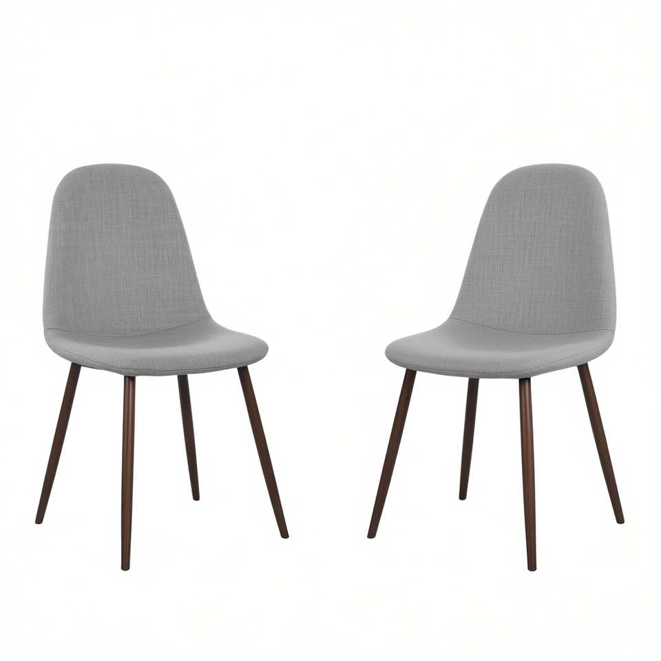 Modern Fabric Dining Chairs Set Of 2 Light Gray Upholstered With Dark Walnut Legs For Home Furniture