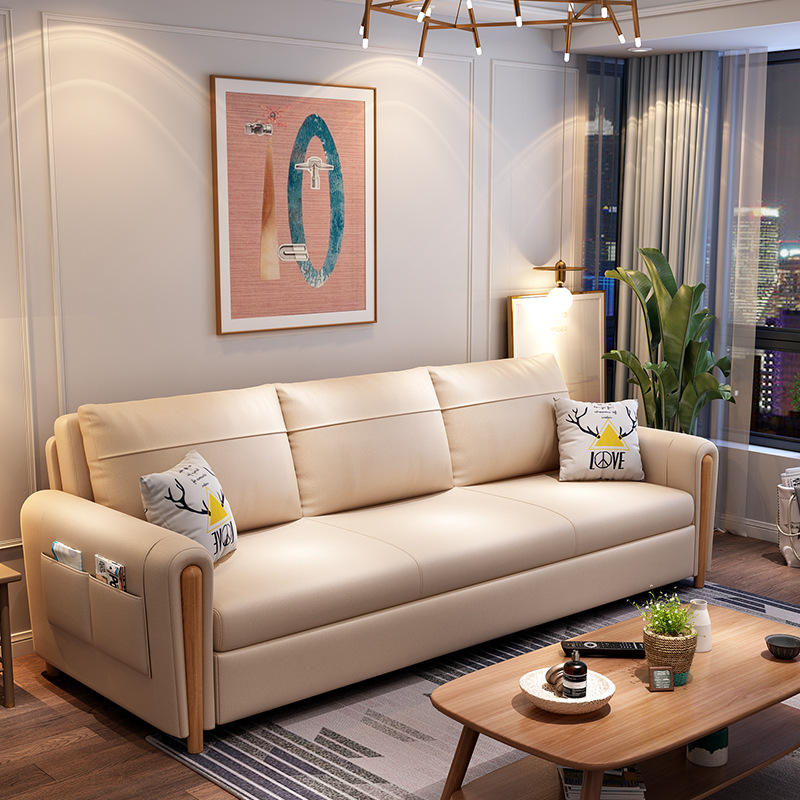 Modern Fabric Folding Chair Sleeper Sofa Cum Bed with Storage Wooden Living Room Couch Multifunctional Divan Three Seat Sofa Bed
