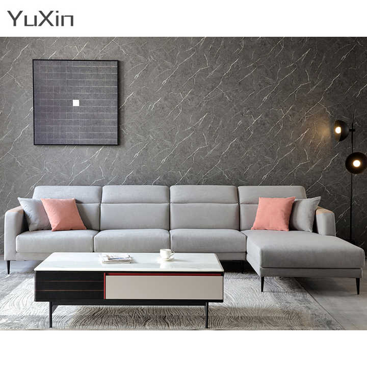 Set di Divani Moderni in Tessuto, Mobili Componibili, Divano Angolare a L per Soggiorno, Arredamento per Appartamenti