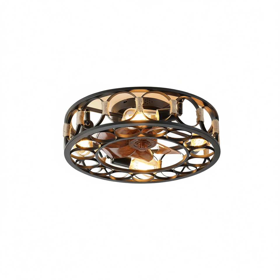 Ventilatore da Soffitto Moderno Stile Fattoria con 5 Pale in Ferro Nero, Luce LED Integrata, Telecomando, Design Industriale, 6 Velocità Reversibili