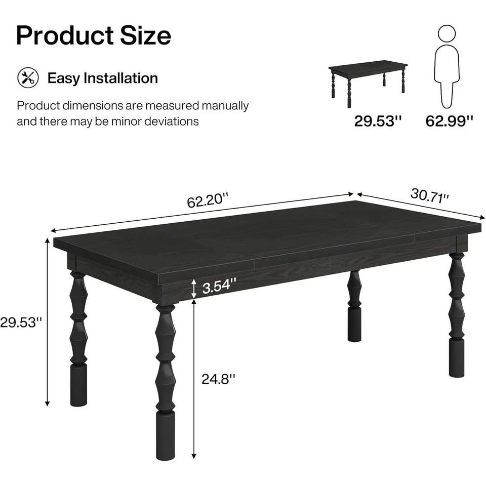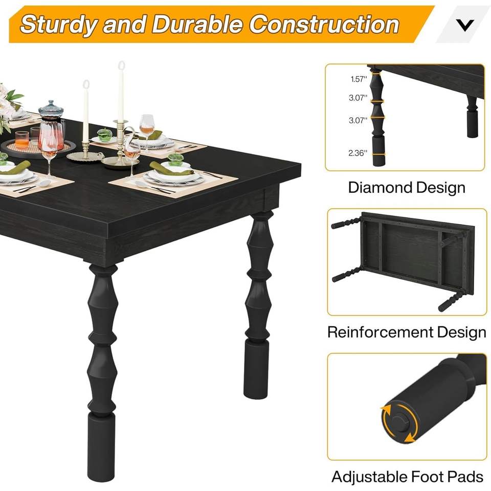 Tavolo da Pranzo Moderno in Legno Stile Fattoria 62 Rettangolare per 4-6 Persone, Tavolo da Cucina Nero Grande per Sala da Pranzo